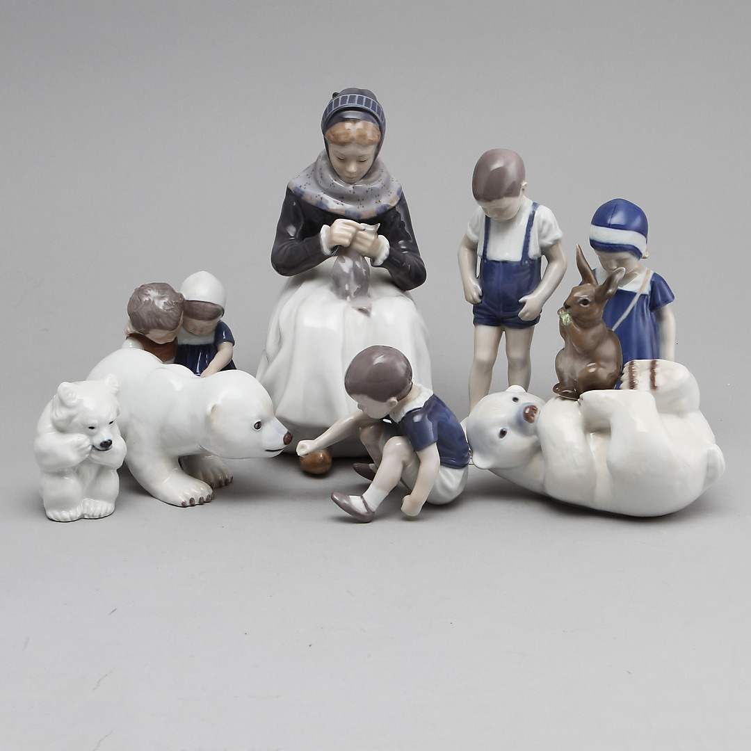 235098. FIGURER, 9 stk, porcelæn, Danmark.