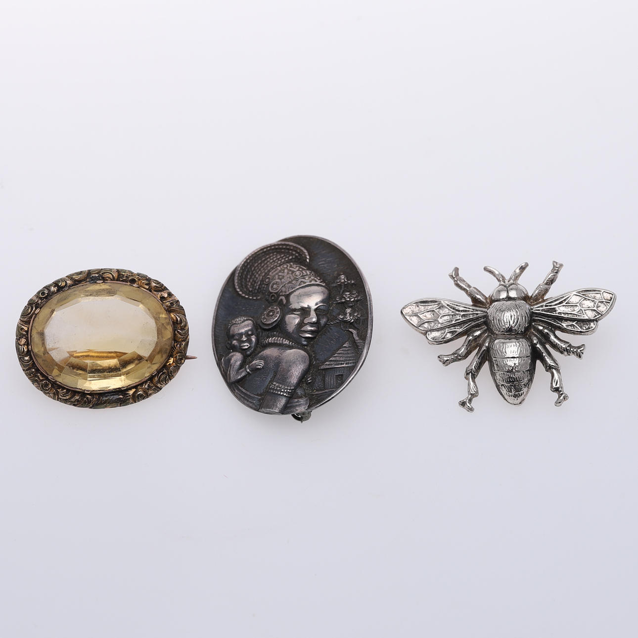 2364160. EN CAMEO-BROCHE, CITRINBROCHE OG TRE ANDRE.