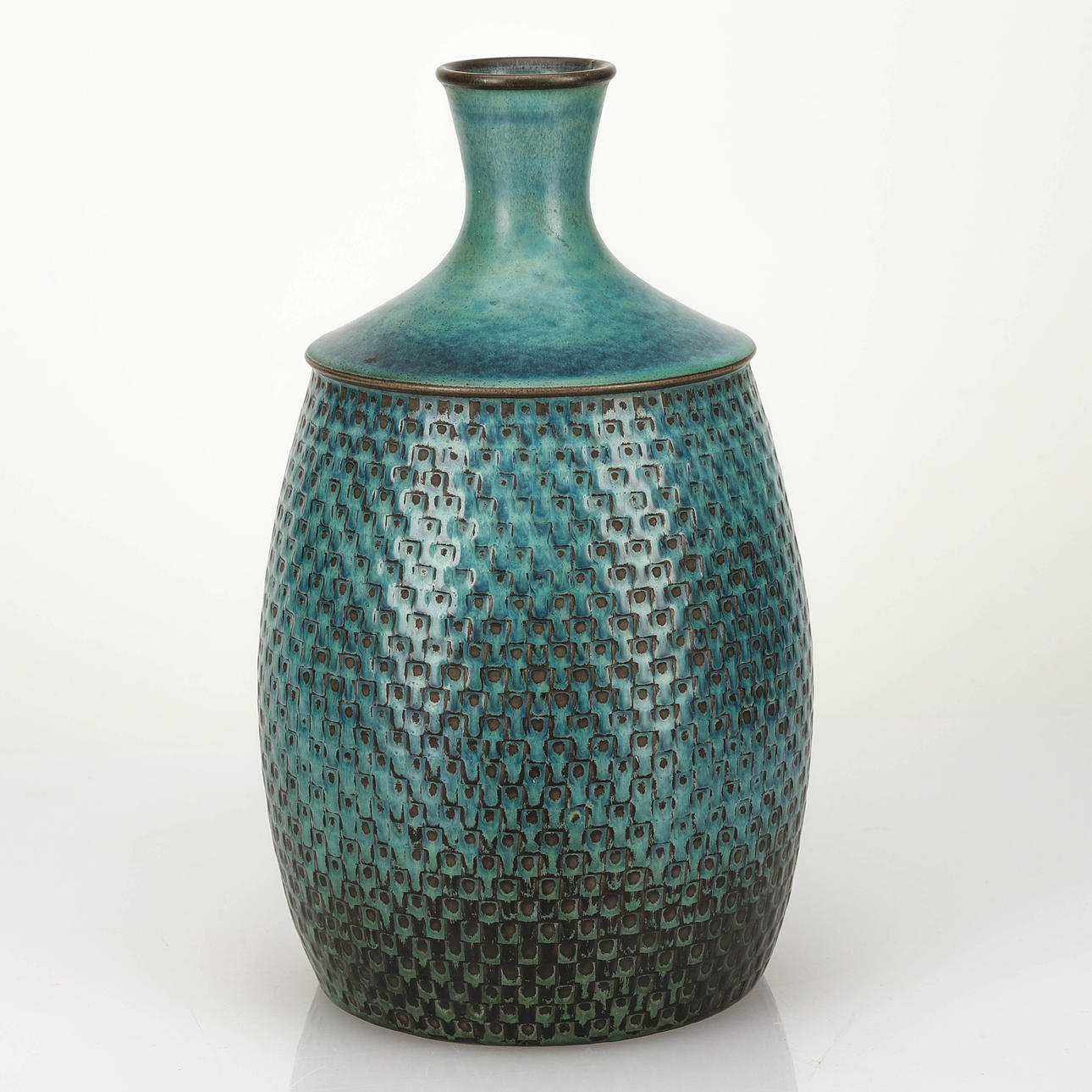 Presset mønster, glaseret i petrolblå glasur.