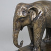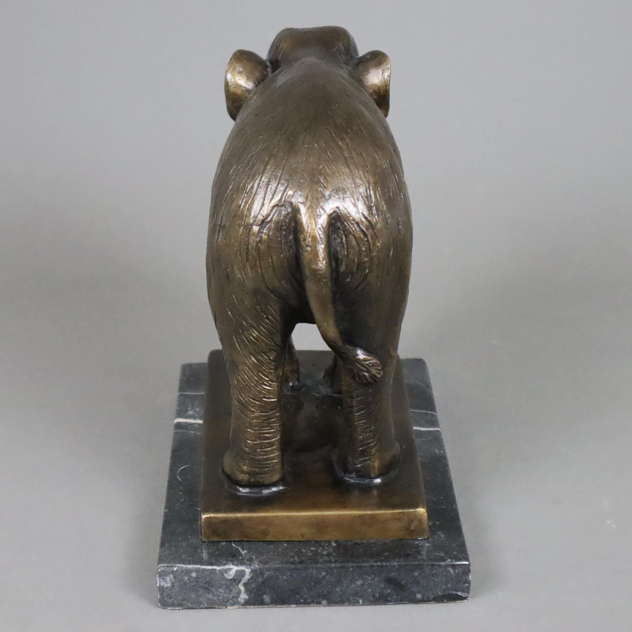 naturalistisk afbildning på rektangulær sokkel, monteret på kornet sort marmorbund, totalvægt ca. 4,9 kg, total højde ca. 22 cm, bundmål: 20x5x13,5x2cm.
