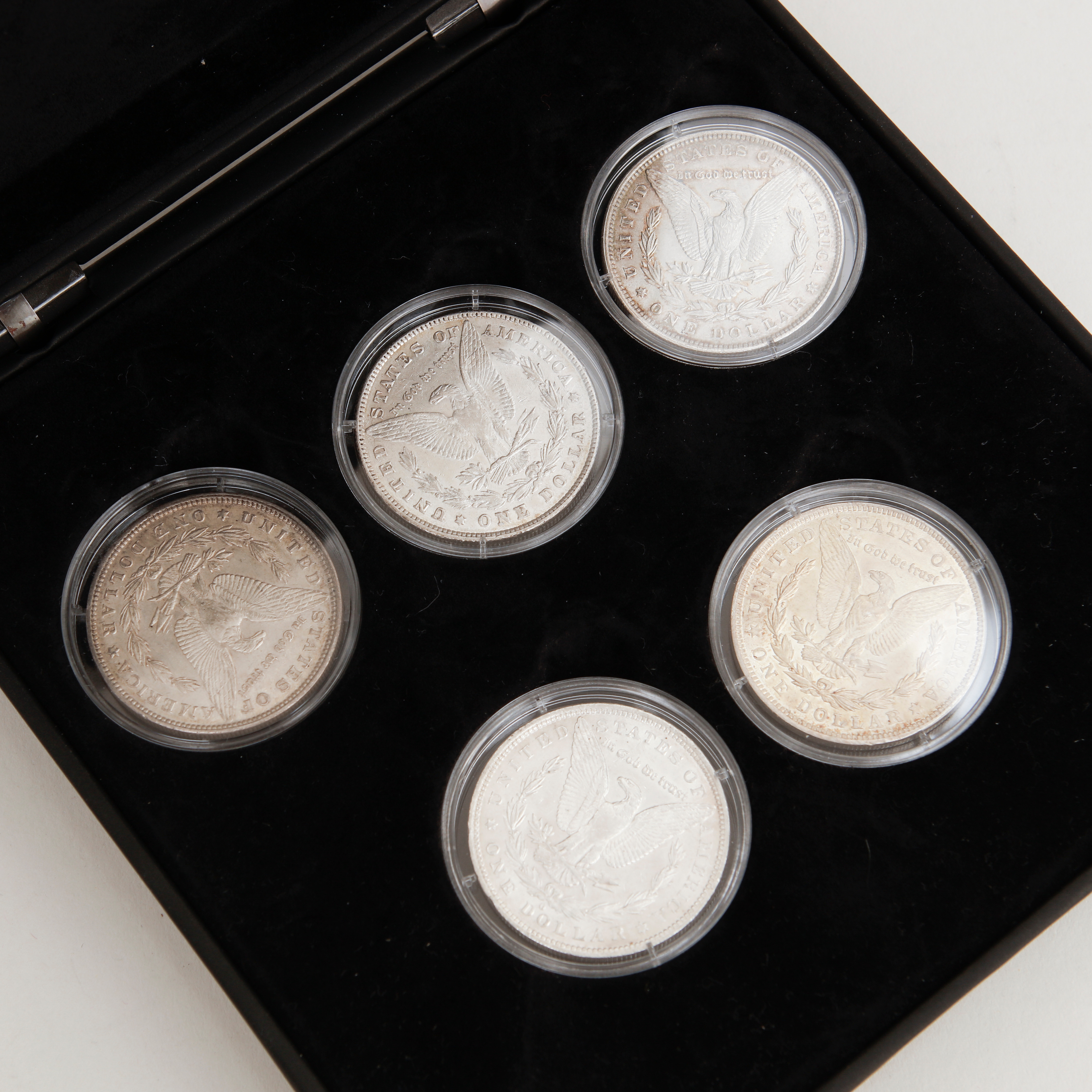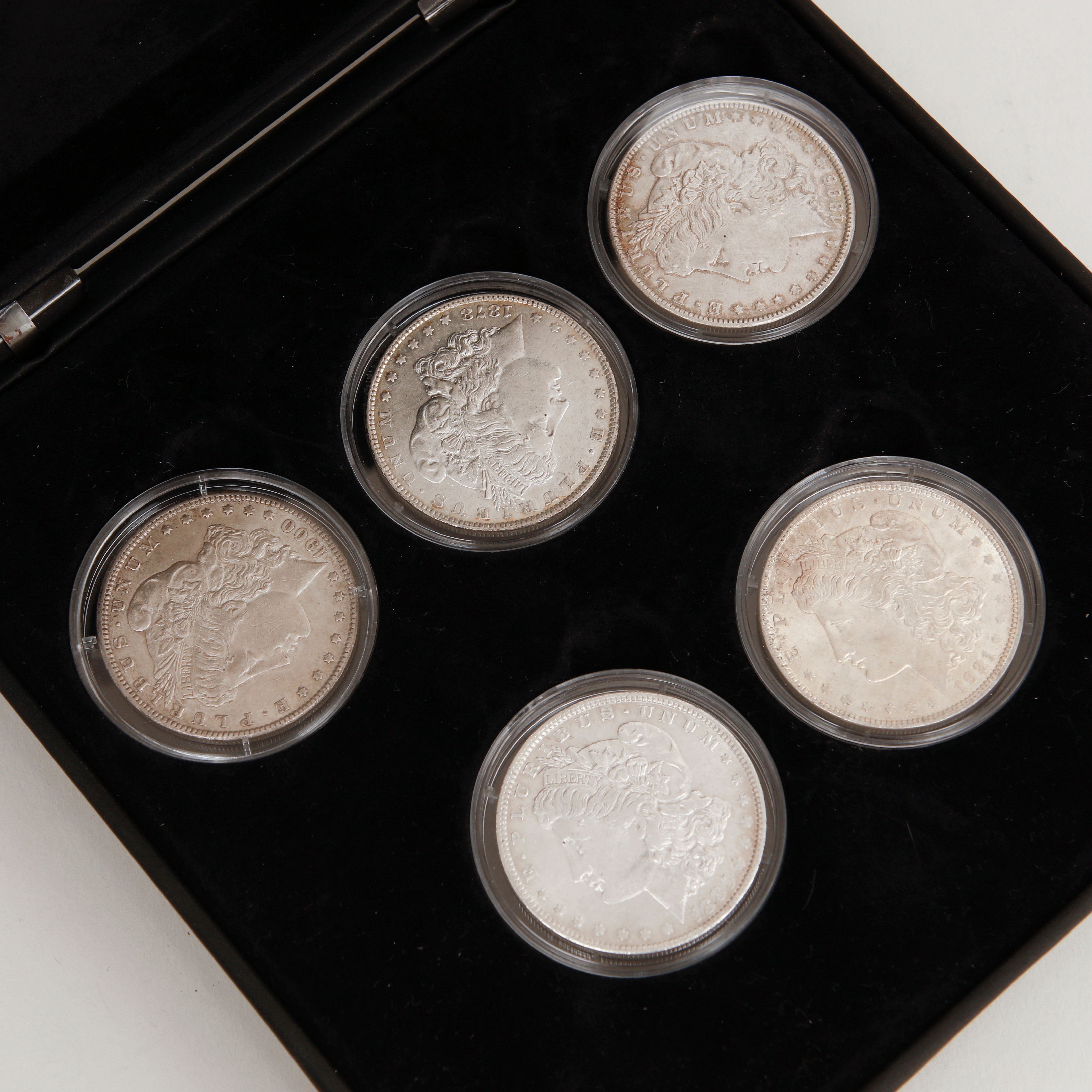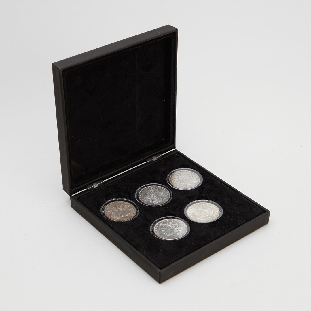 2375813. MØNT, 5 stk, 2 dollars, "Morgan dollars" sølv, USA, 1878-1921.