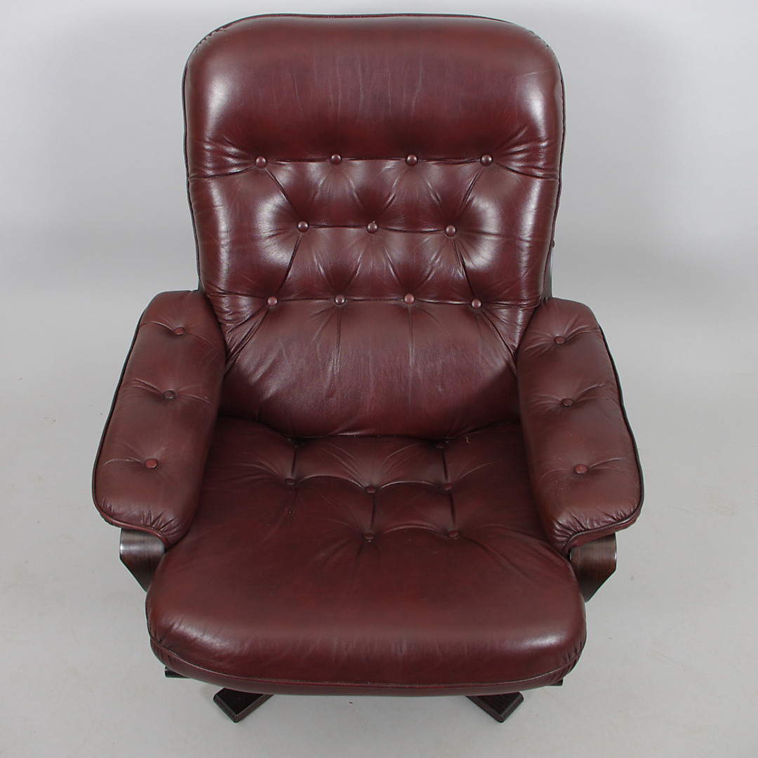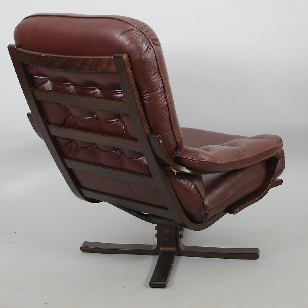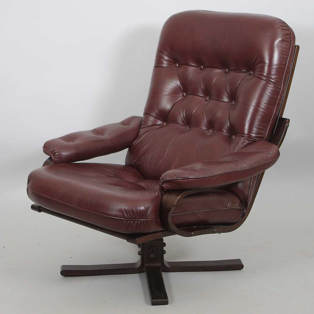 238260. SPINDERENDE LÆNESTOL, brunt læder.
