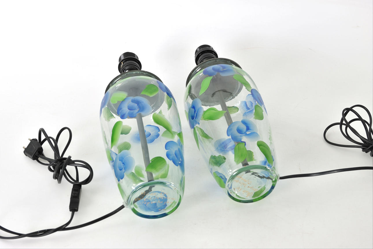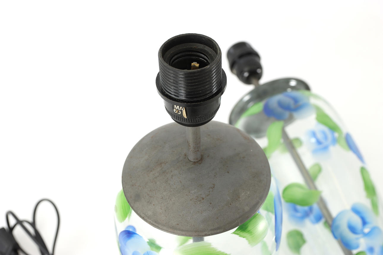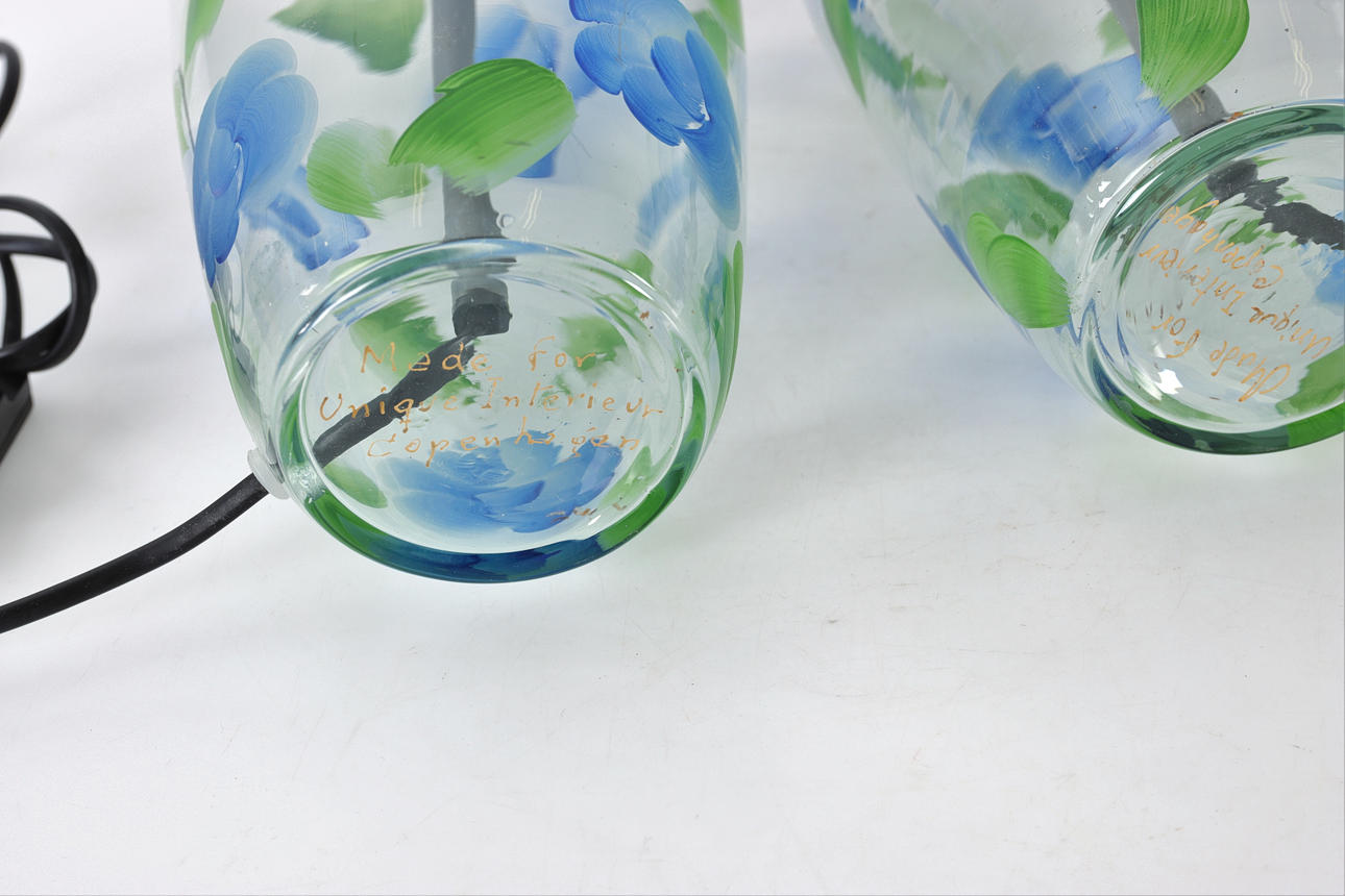 1 par bordlamper, håndmalet glas, blik. Mærket Unique Interieur Copenhagen.