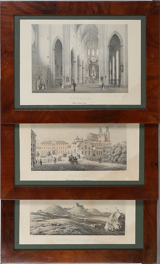 239277. MALERIER, 3 stk, tryk, Uppsala-motiv, 18 / 1900-tallet.