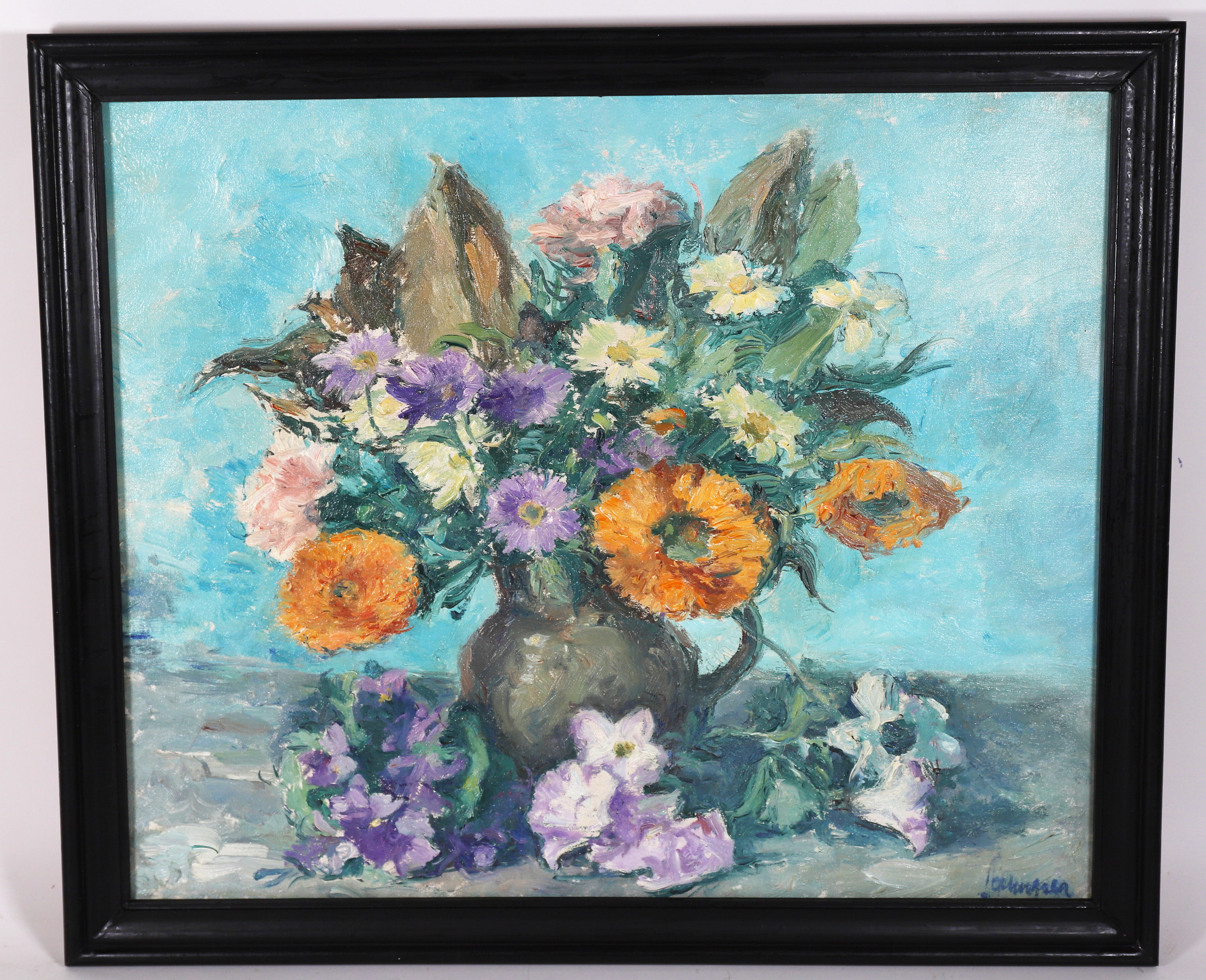 2394672. SAMPER. STILLEV AF BLOMSTER. OLIE PÅ LÆRRED.