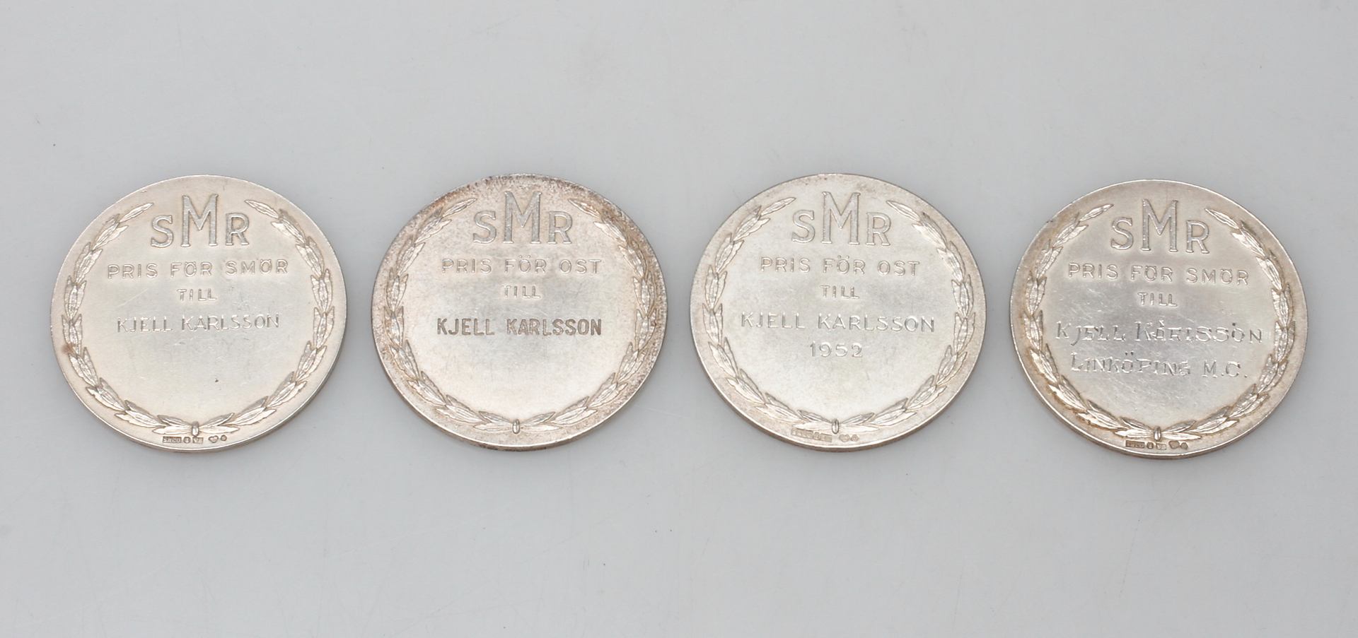 239468. MEDALJER, 4 stk, sølv, vægt ca. 149,9 gram.
