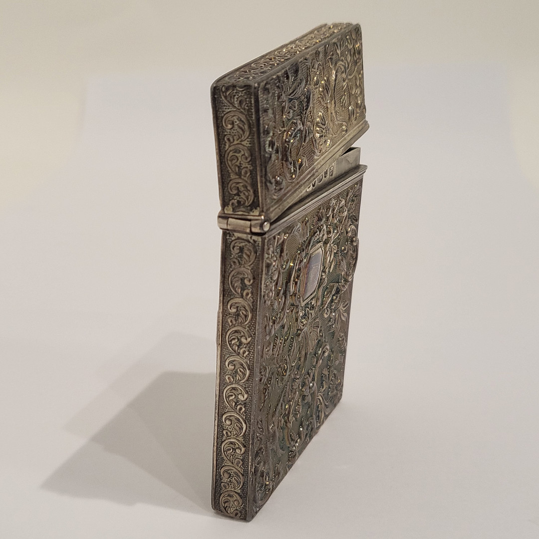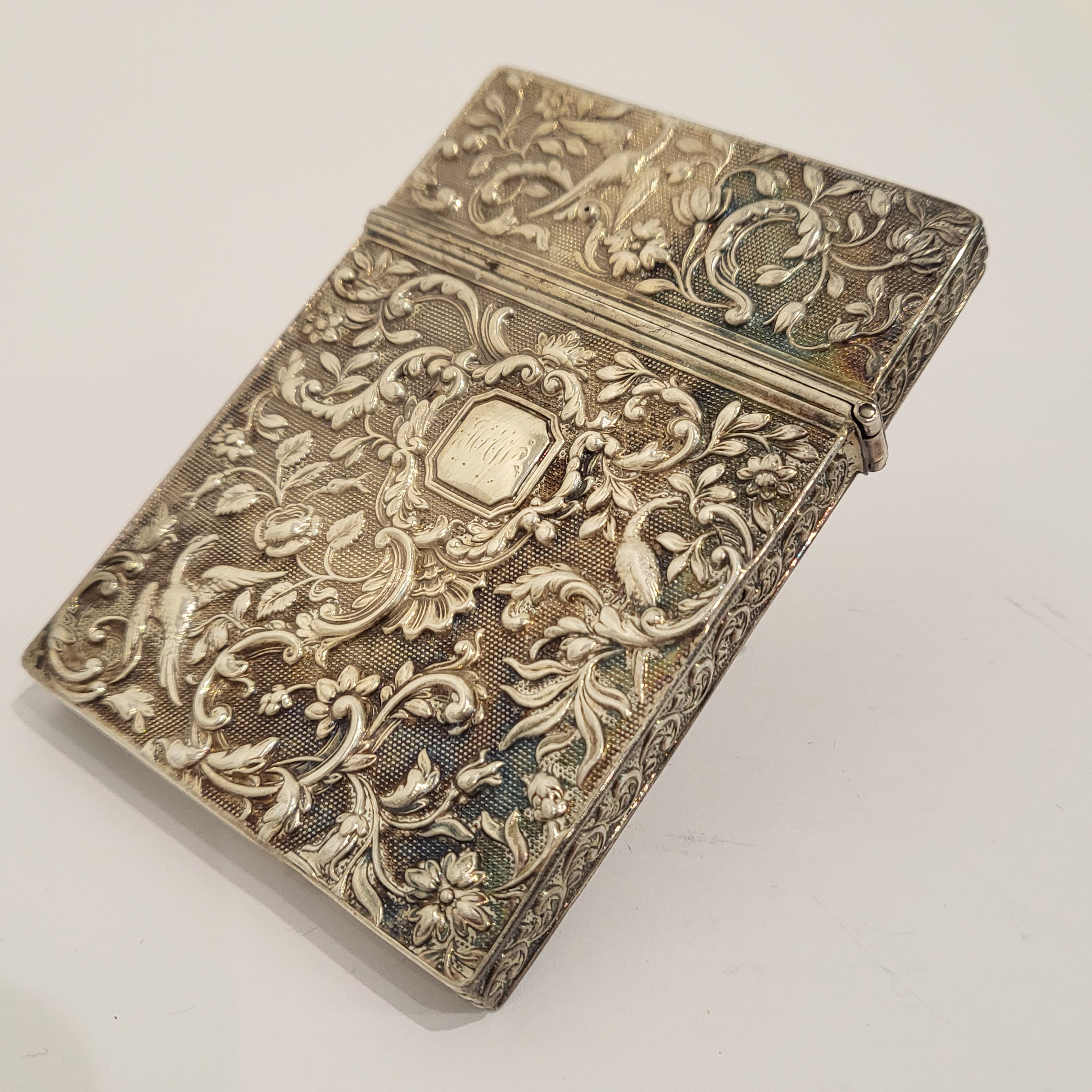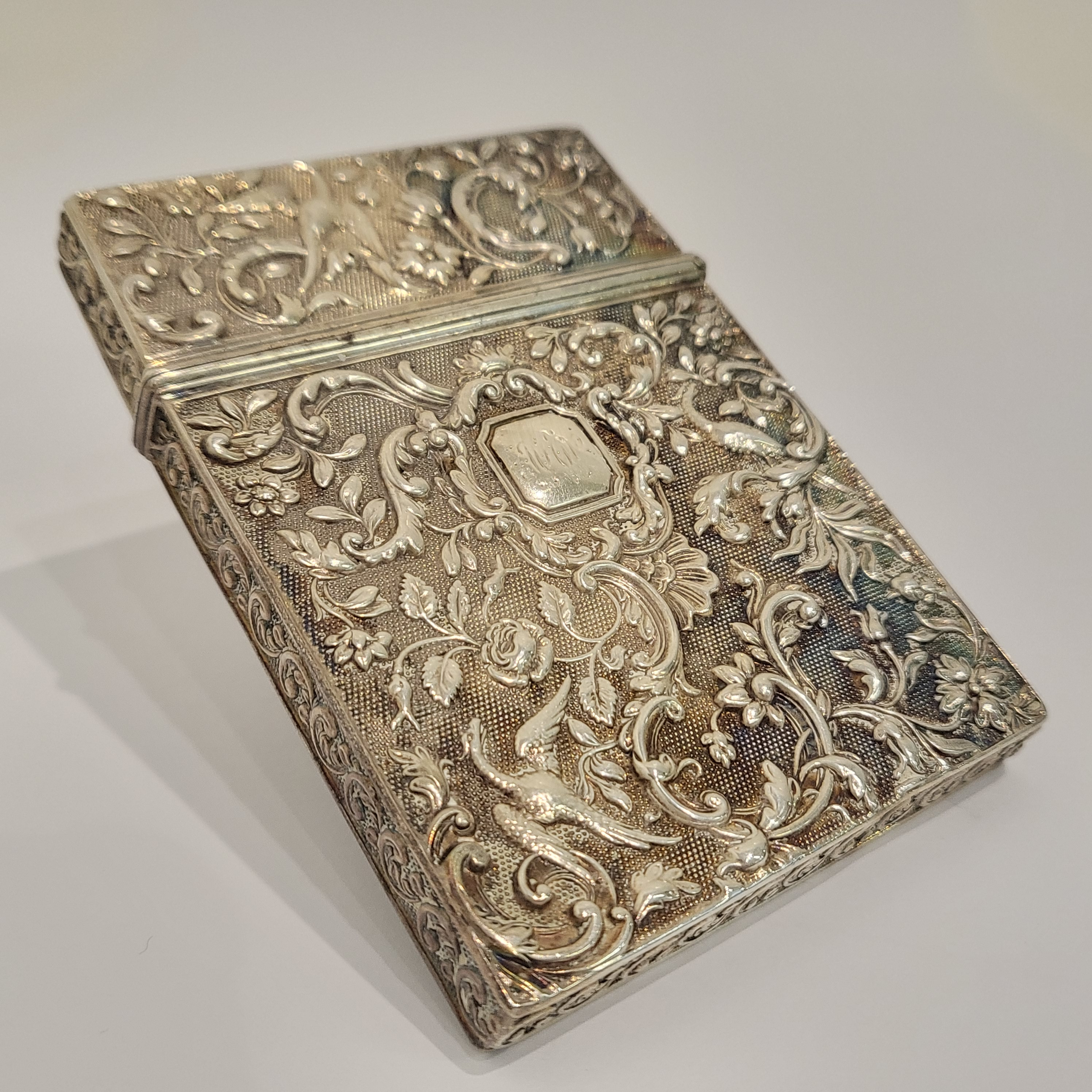 2401396. SØLVKORTHOLDER MED INITIALER.
