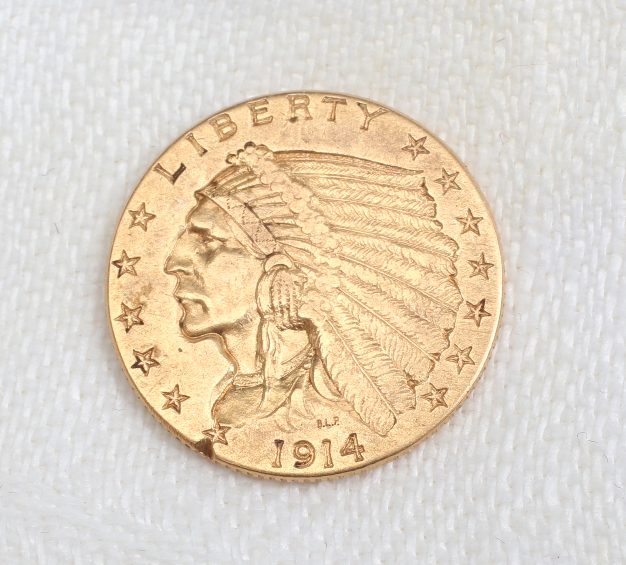 240144. GULD MØNT, "Indisk hoved", $ 2,5, 1914.
