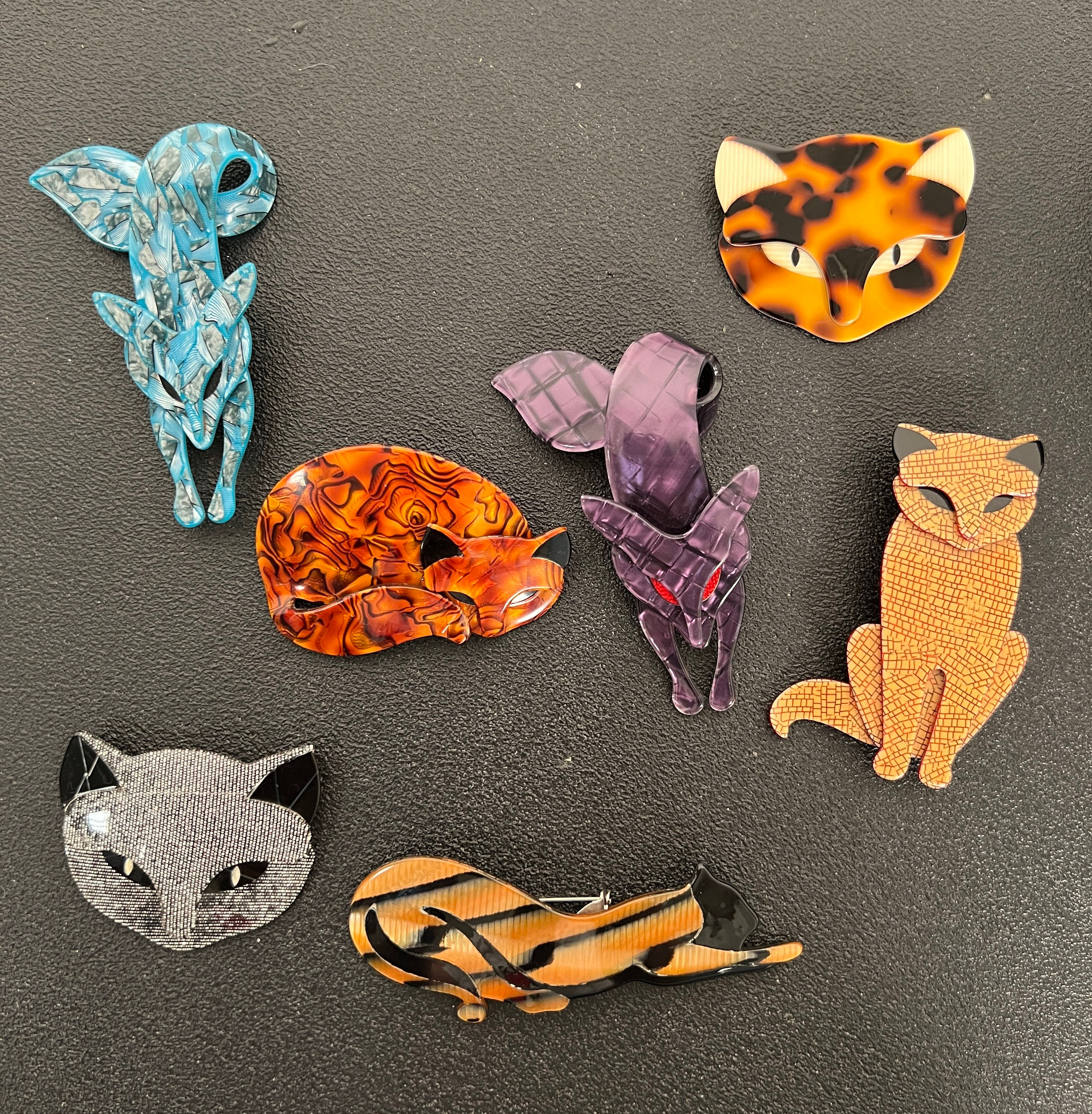 2401736. Lea Stein, sæt brocher, harpiks, dyr.