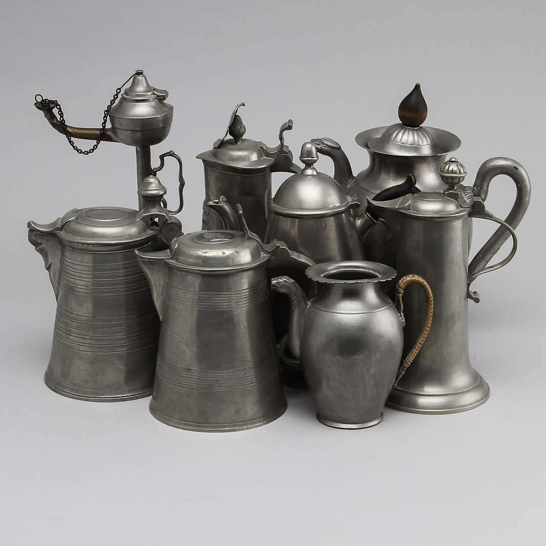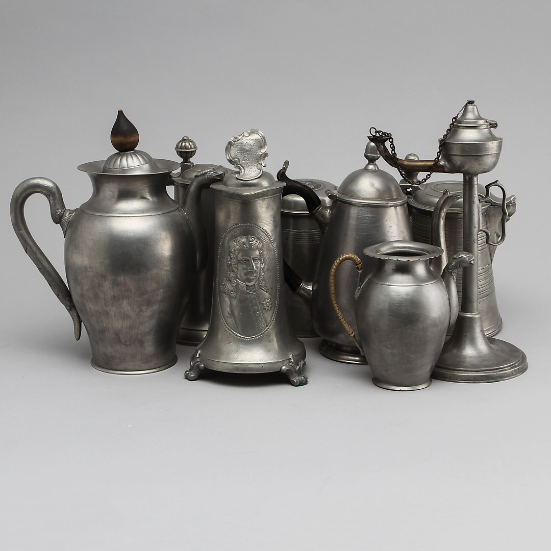 240283. TINN OBJEKTER, 8 stk, 1800-tallet.