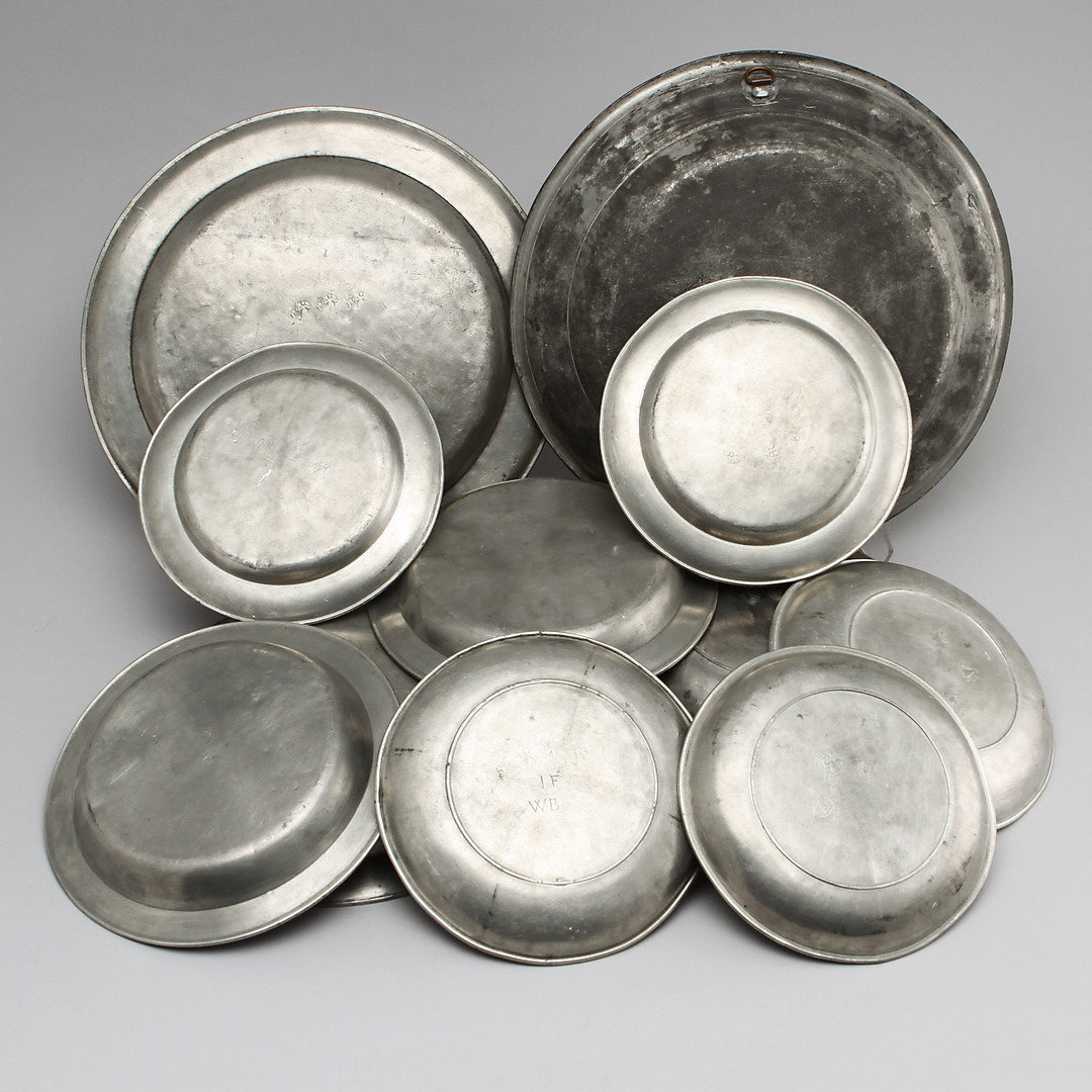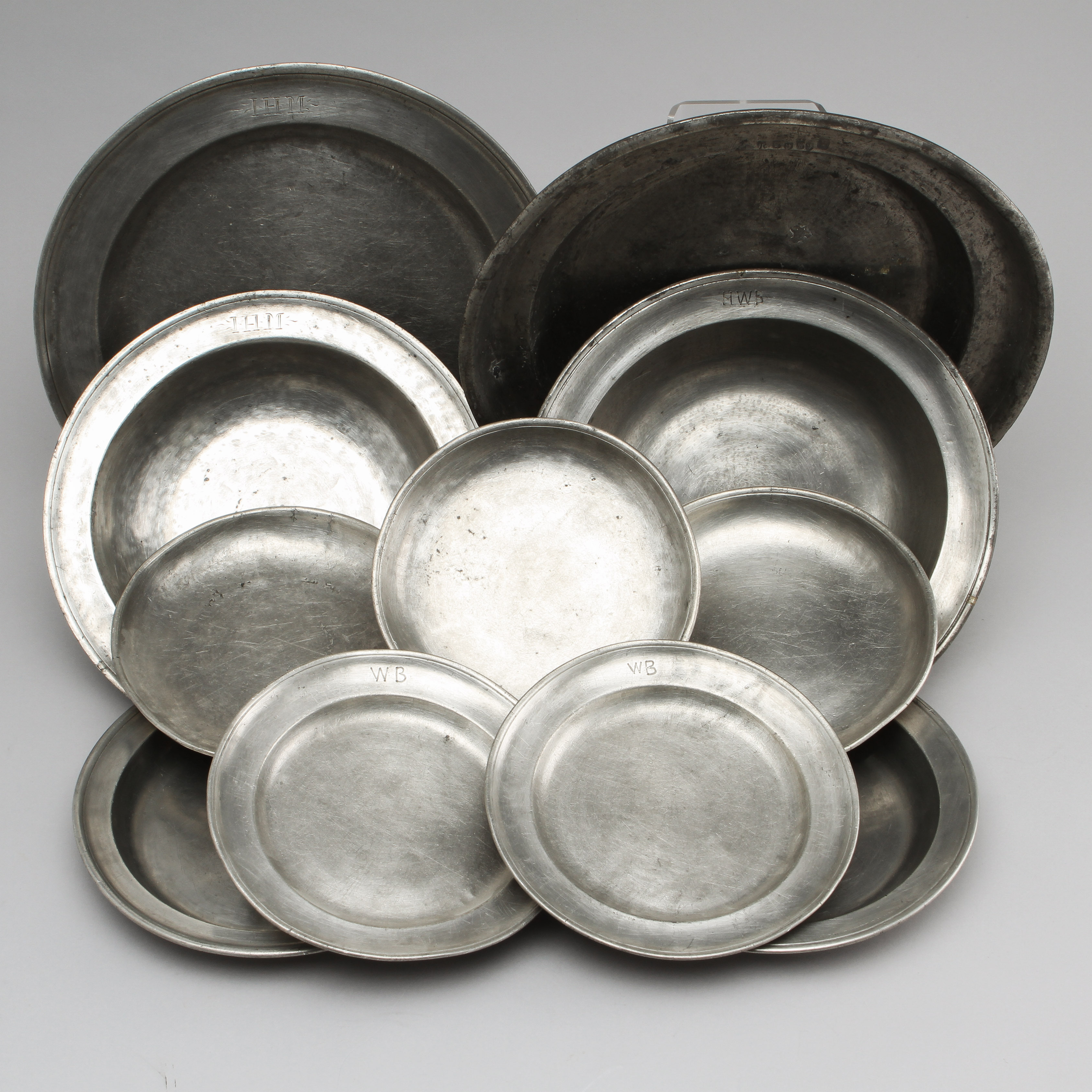 240333. TINN OBJEKTER, 11 stk, 1800-tallet.
