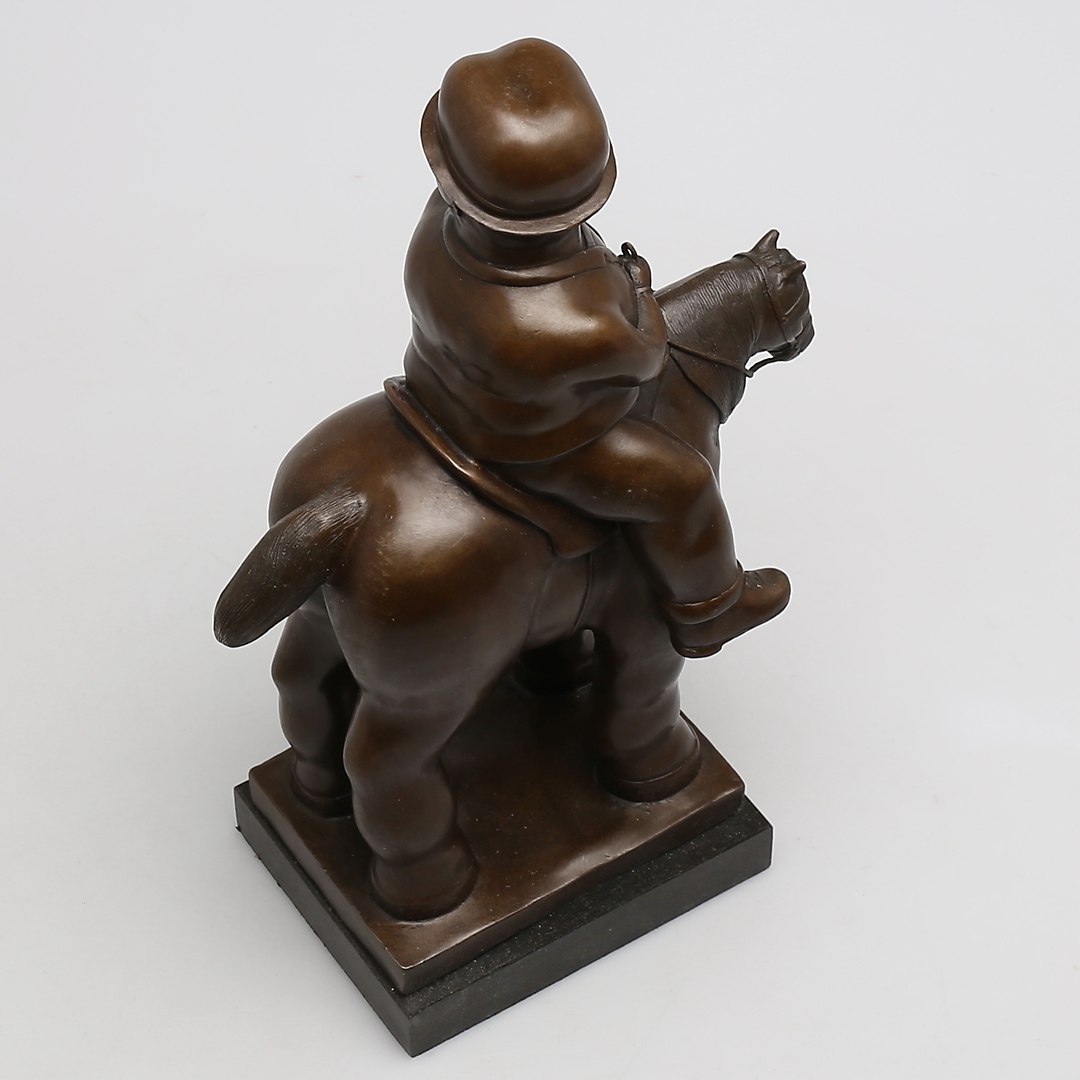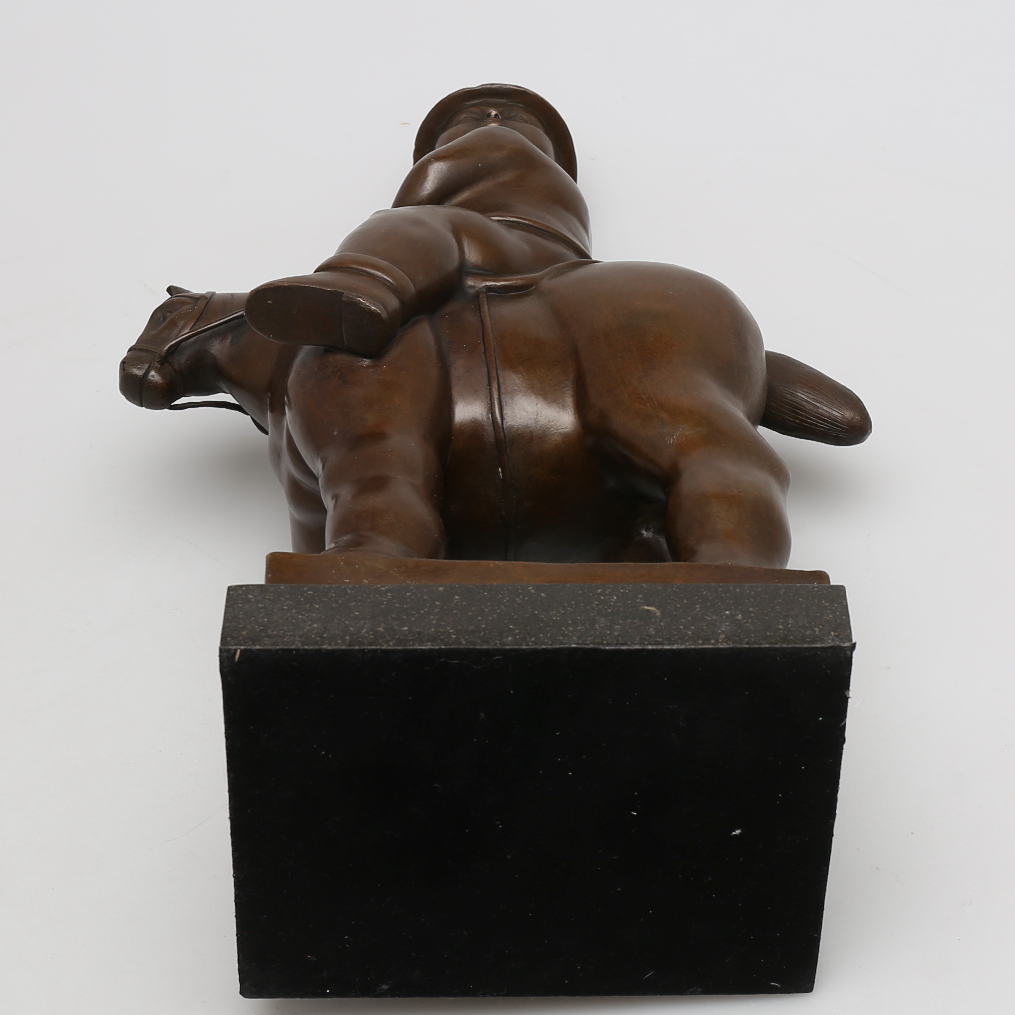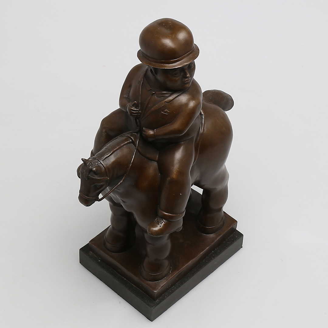 240410. OKÄND KONSTNÄR. Mand til hest i bronze, usigneret.