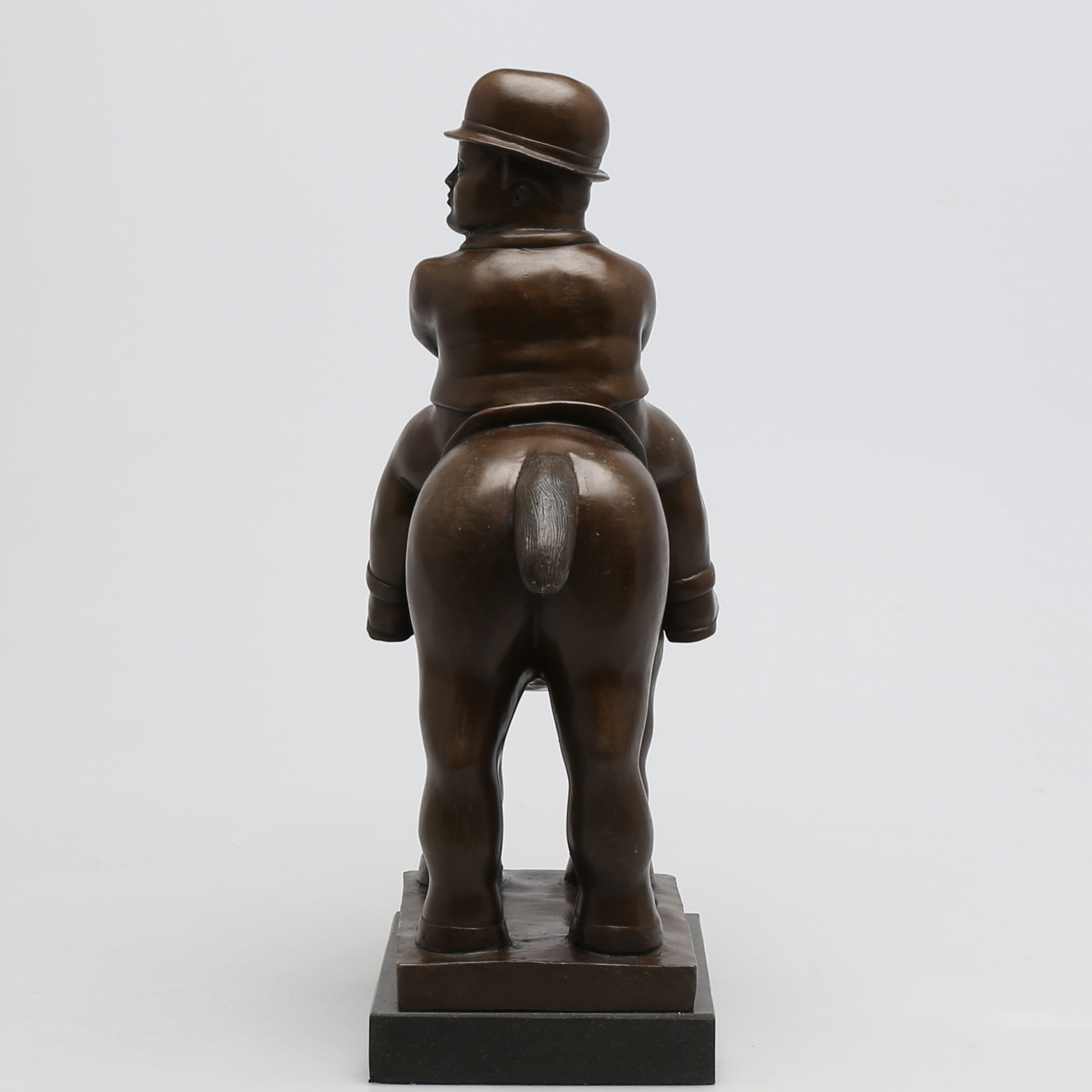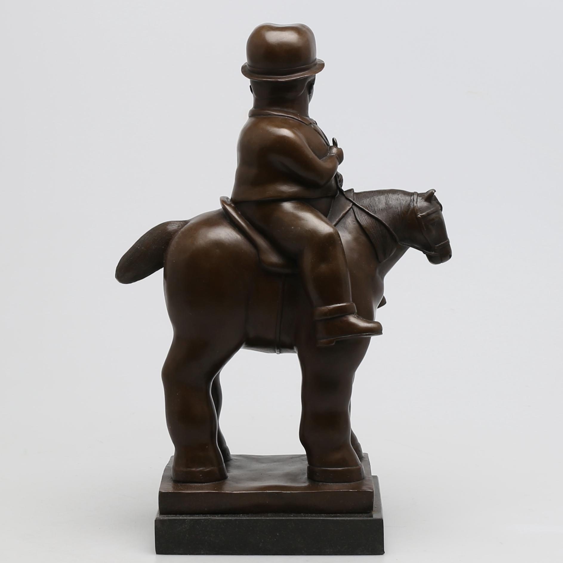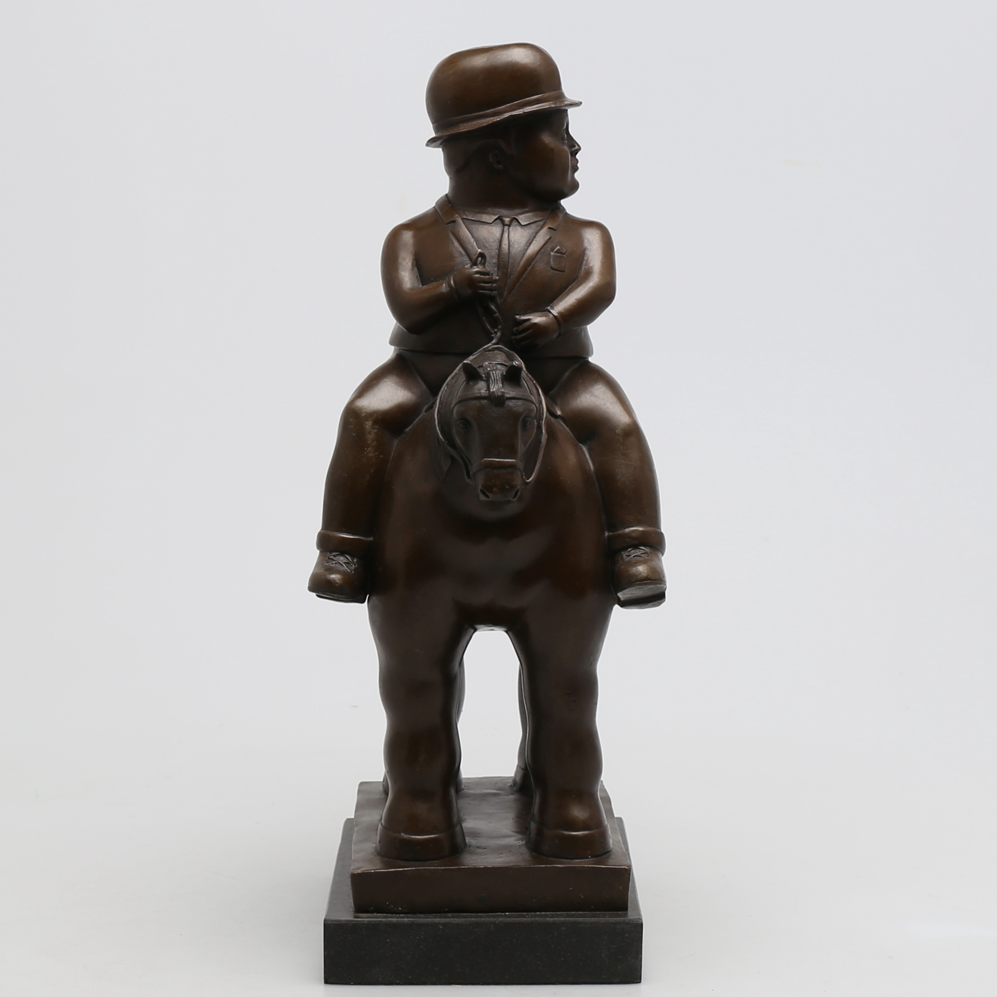 240410. OKÄND KONSTNÄR. Mand til hest i bronze, usigneret.