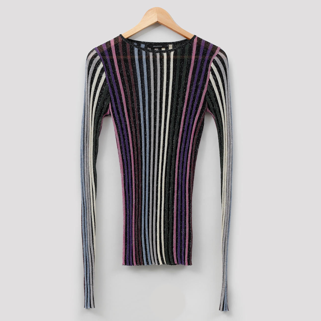 Strikket tynd sweater i viskose- og polyesterblanding med elementer af metallisk tråd, str. S.
