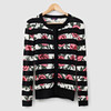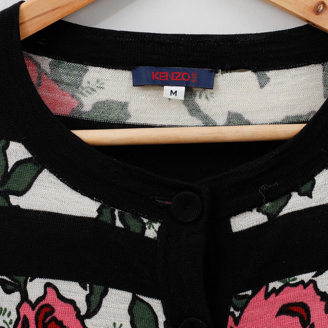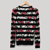 Stribet cardigan i uld med mønster af roser, str. M. 1990'erne/2000'erne.