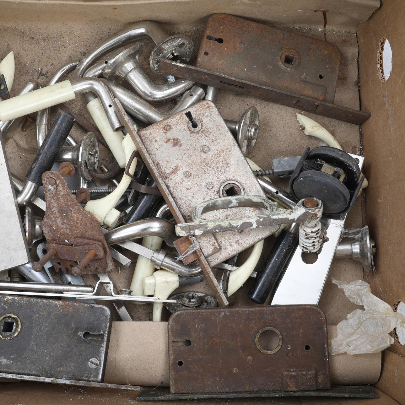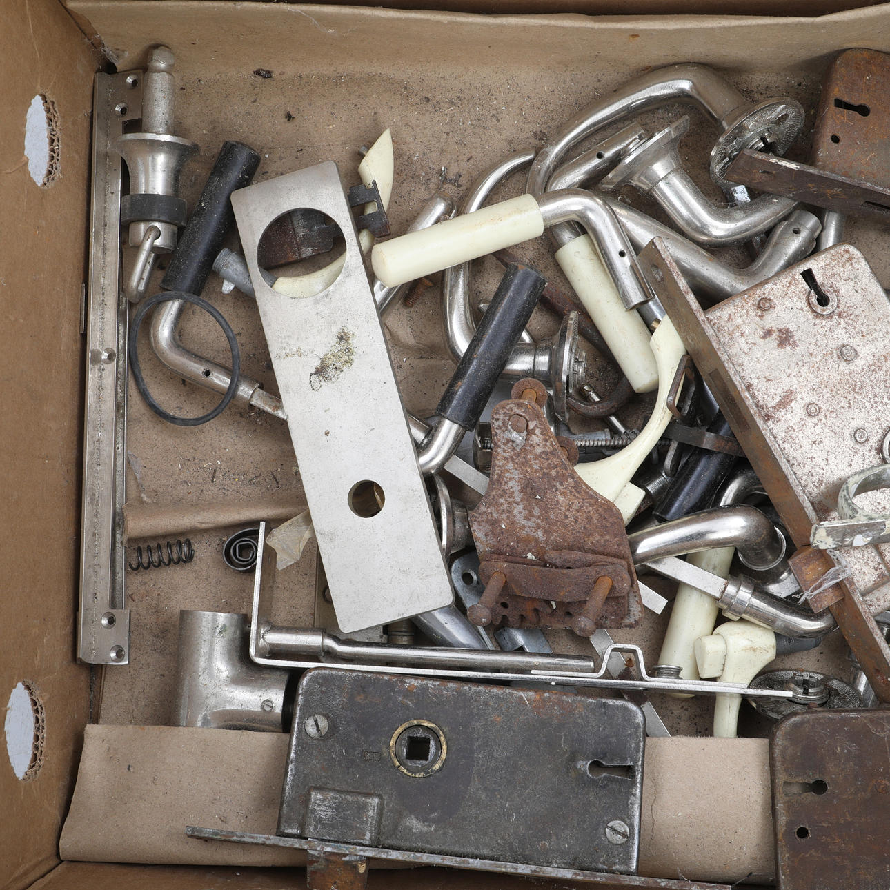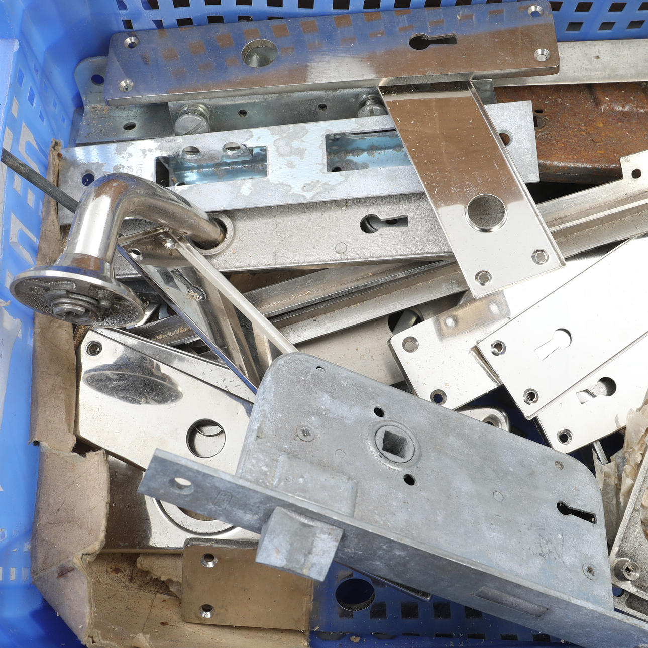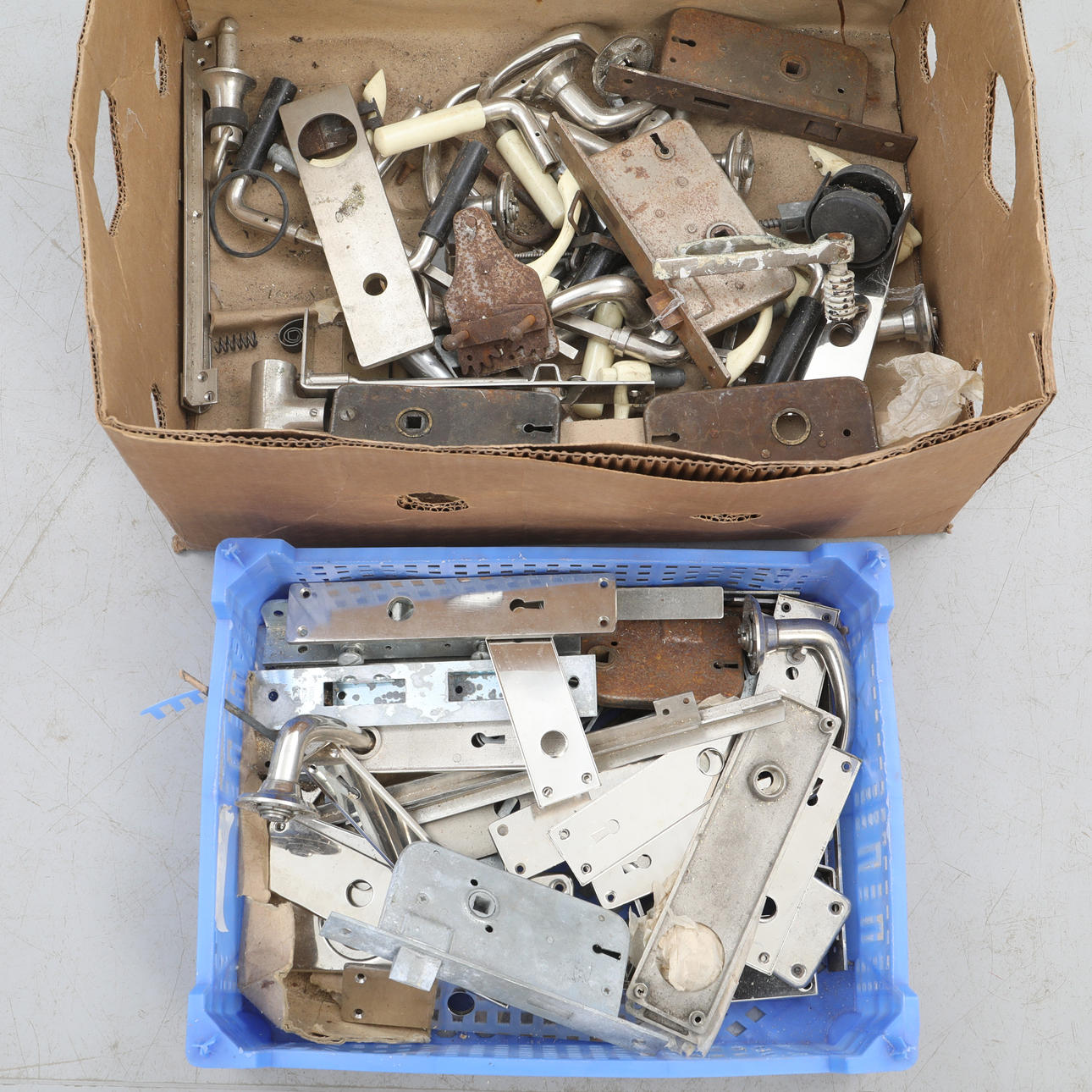 Et Sæt låseplader, dørhåndtag, låsemekanismer.