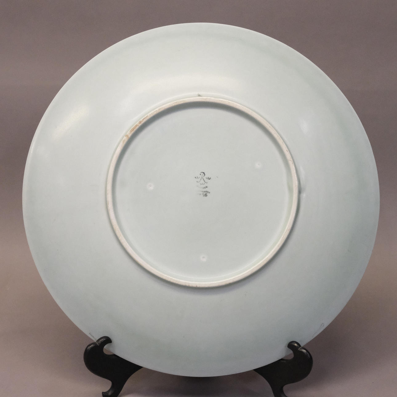 Landligt figurmotiv. Fadets diameter: ca 36,5 cm. Mærket Rörstrand og CHS på bagsiden.