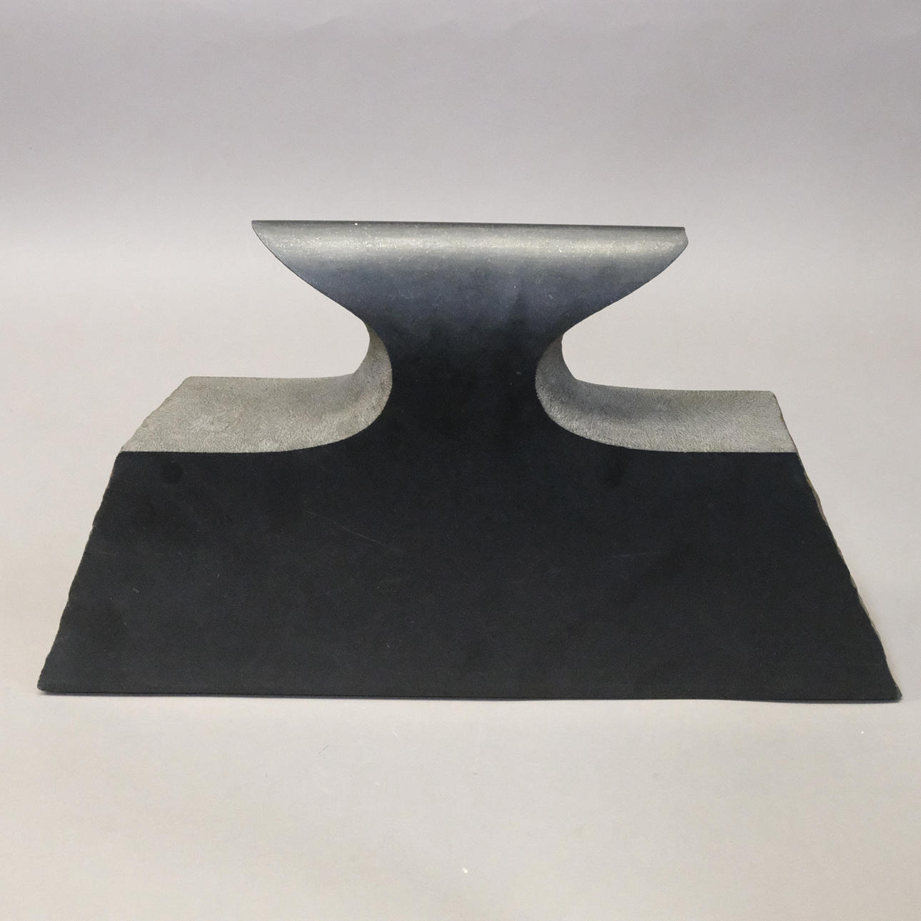 I form af en ambolt. Højde: ca 25,5 cm. Længde: ca 45 cm. Signeret og dateret 1989.