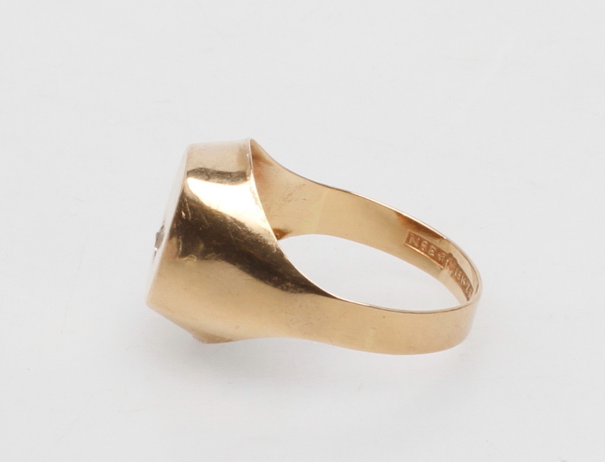 242768. Signetring med sten, 18k guld, vægt ca. 3 gr.
