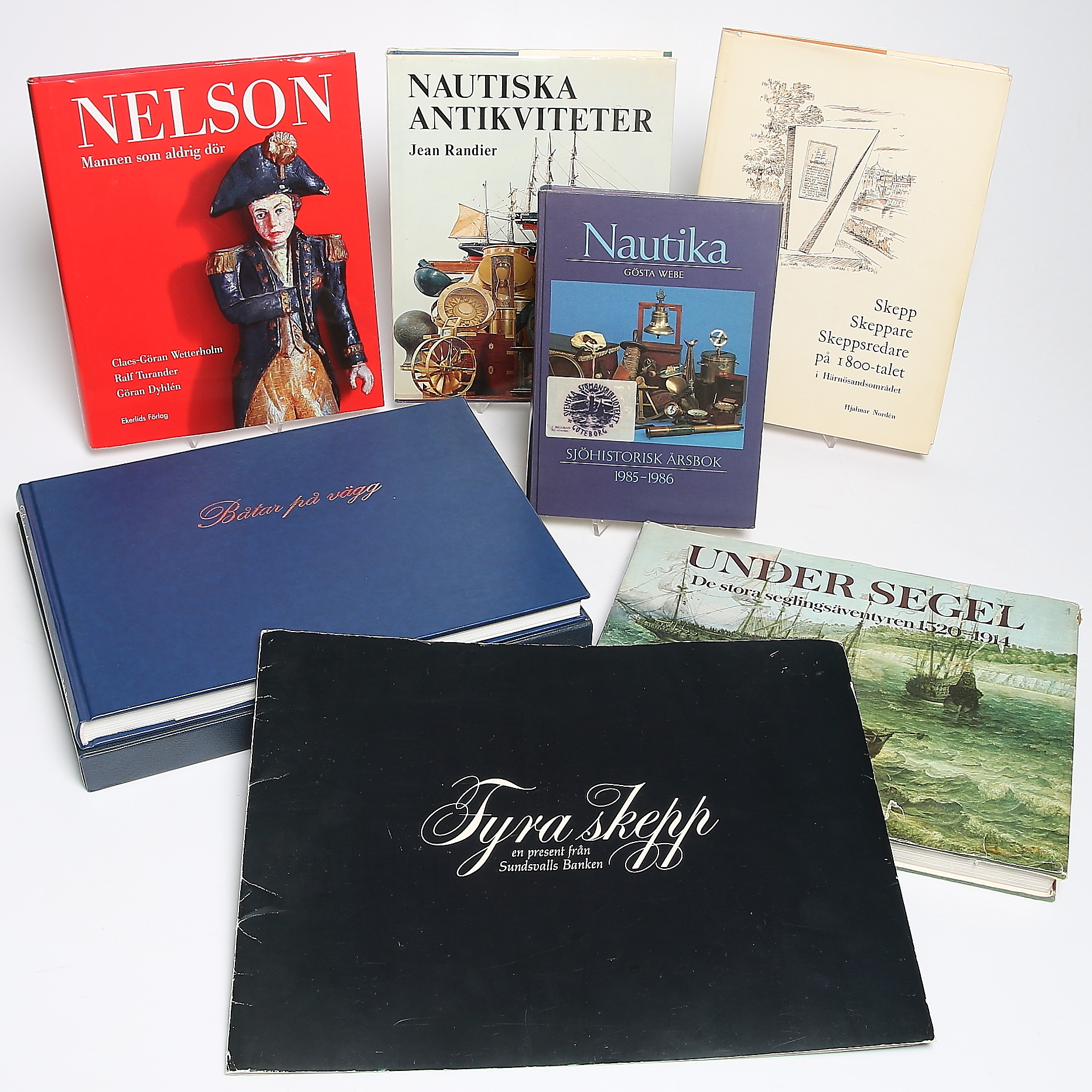 243192. BØGER, 6 stk, bl.a. Nautiske antikviteter.