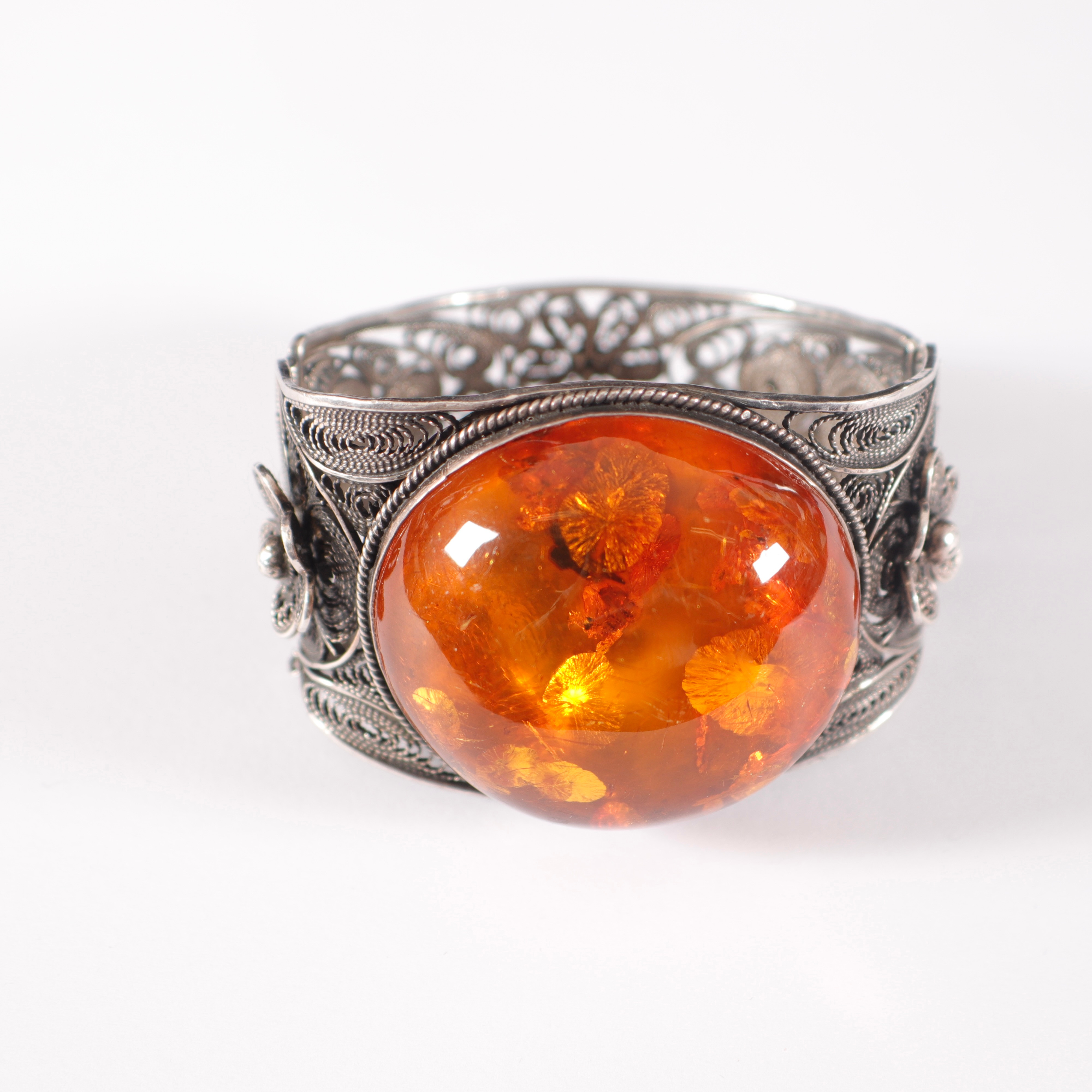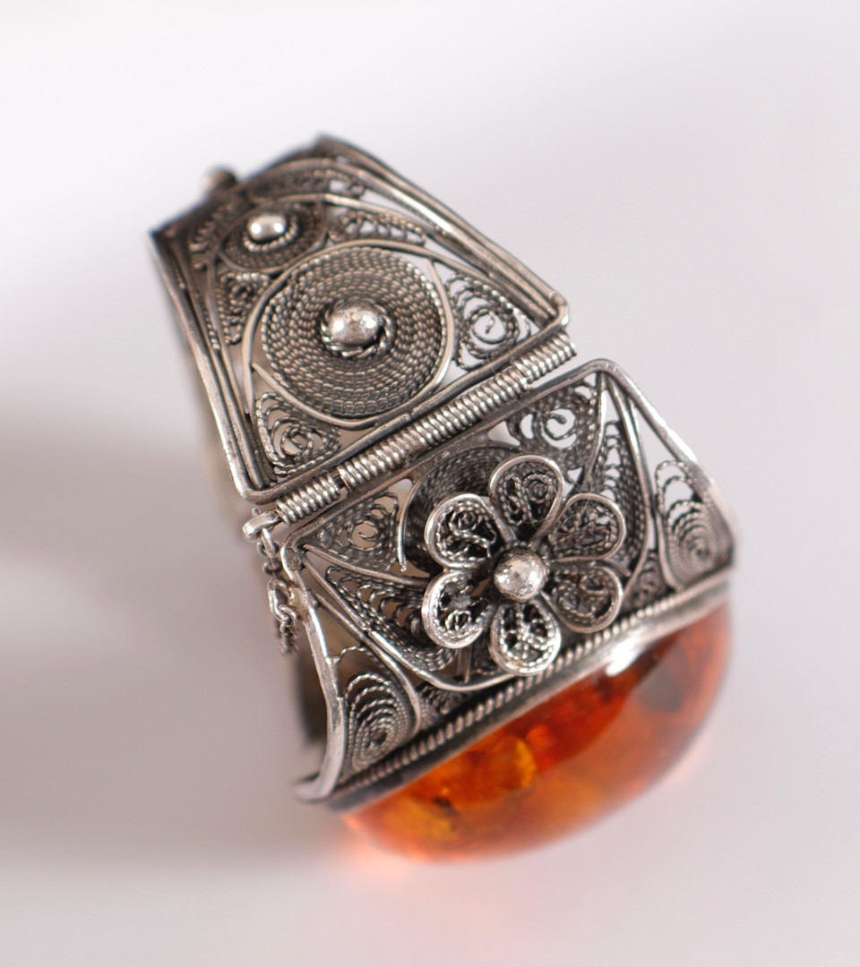 2433364. ARMBÅND, sølv med rav, 20. århundrede.