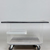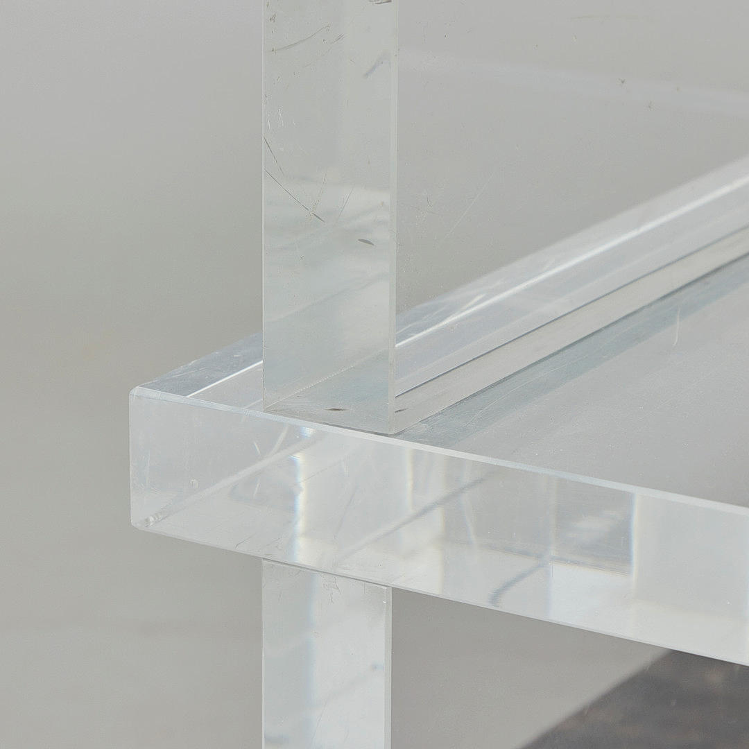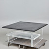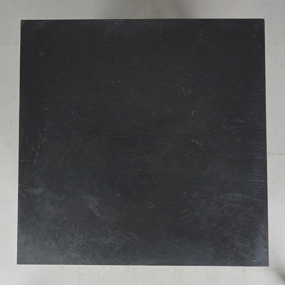 Sofabord/bord, skifer, akrylglas. Sofabord med underkonstruktion af tykvægget akrylglas med mellemniveau og firkantet bordplade af massiv skifer, H.53cm, L.114.5cm, B.114.5cm.