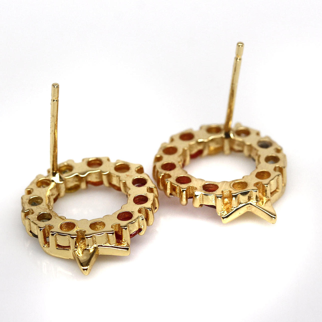 Et par guld på 925 sølv øreringe prydet med flotte gule, orange og røde safirer, Dia. 1,5 cm.