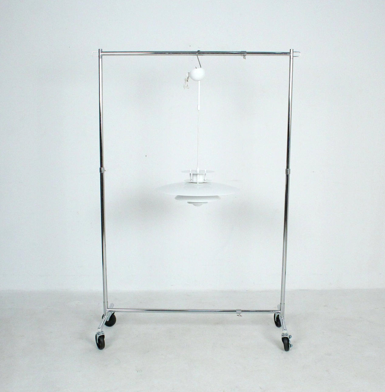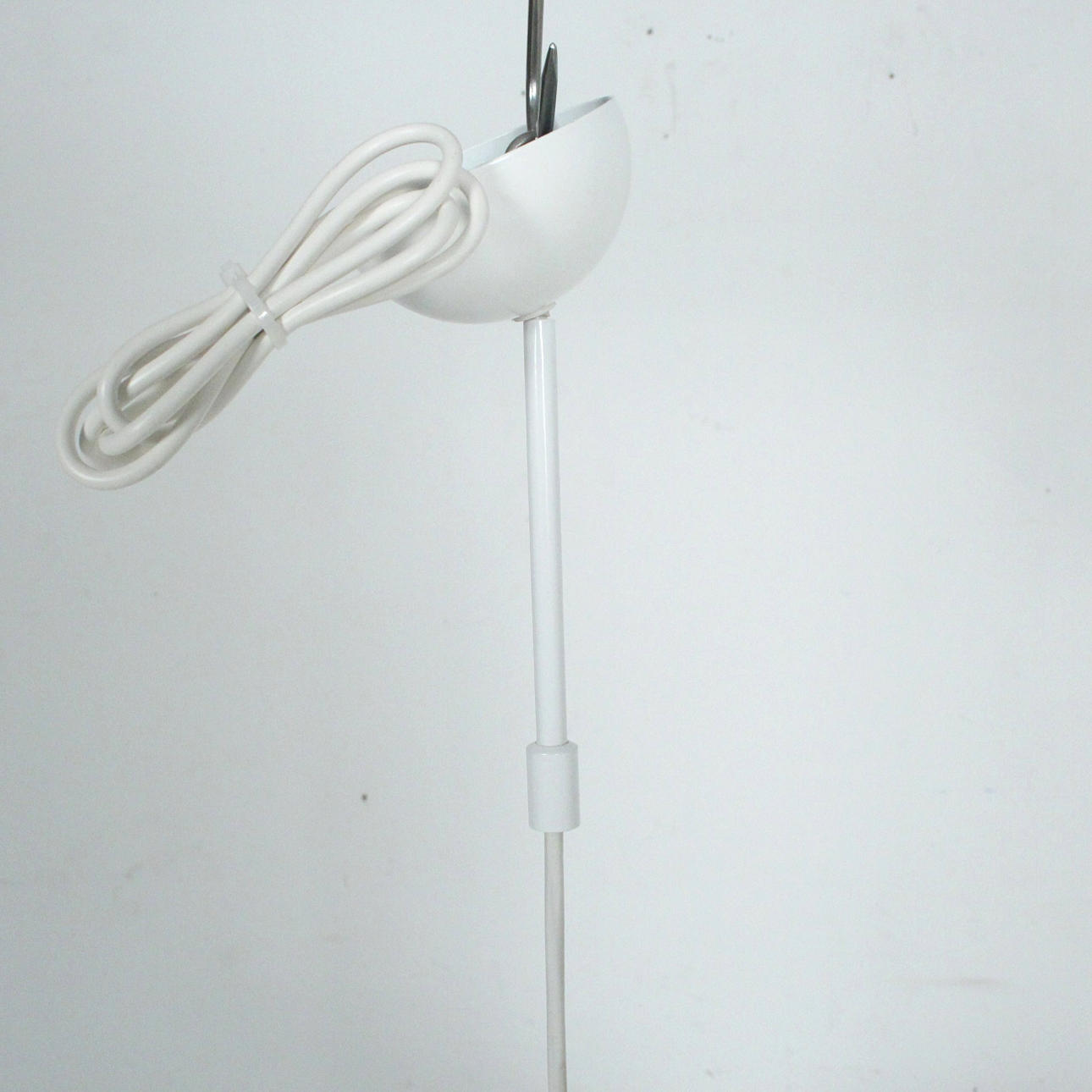 Materiale: Metalmalet hvid, plastik Mål: H: 90 cm, D: 50 cm Lampen har en praktisk blændingsbeskyttelse.