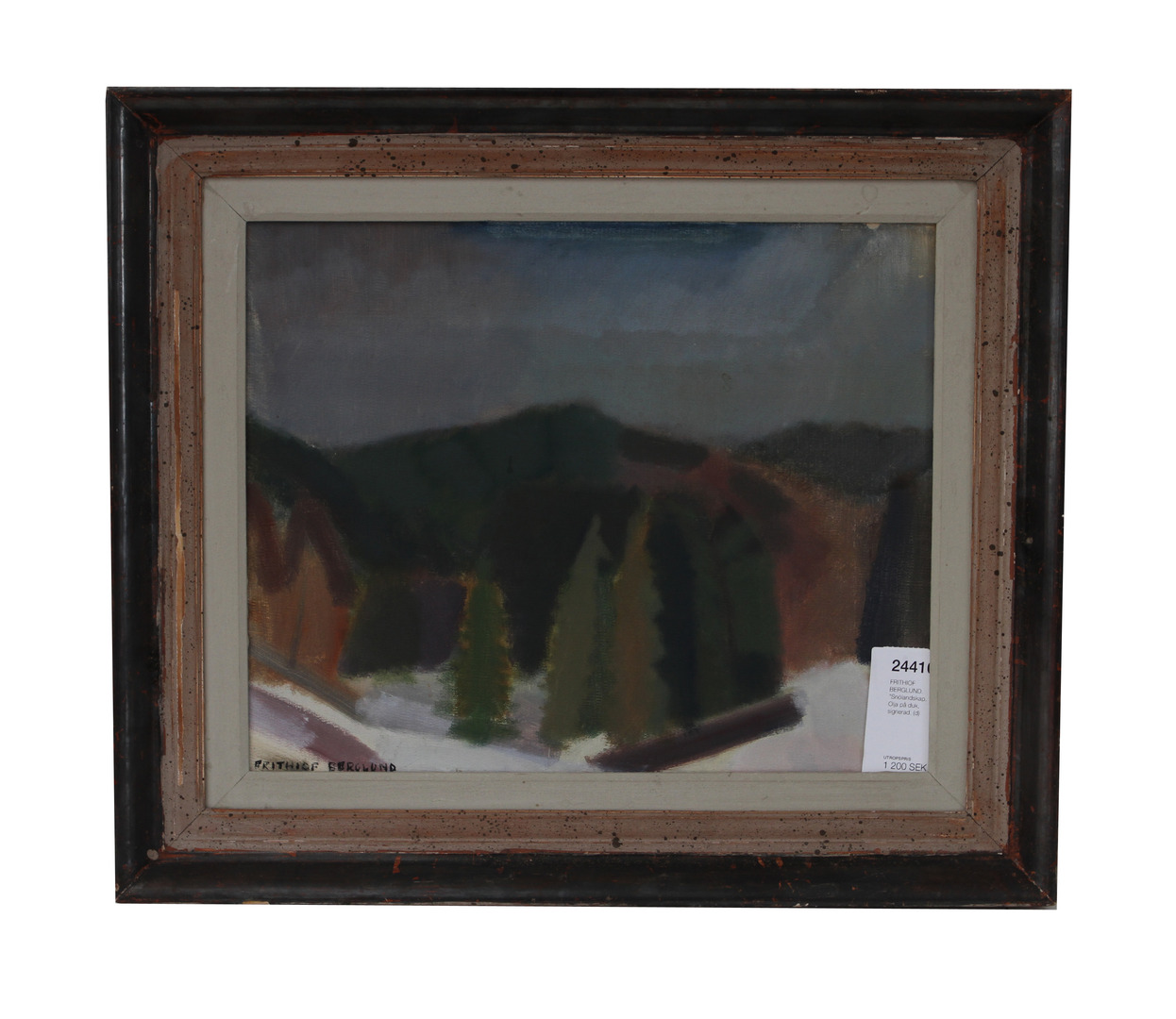 24410. FRITHIOF BERGLUND. "Snelandskab. "Olie på lærred, signeret.