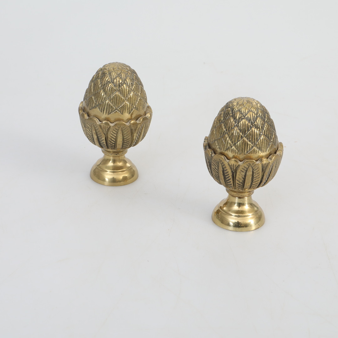 2441578. MESSINGKNOPPER, messing, gardinknopper, kegler, 8x5 cm.