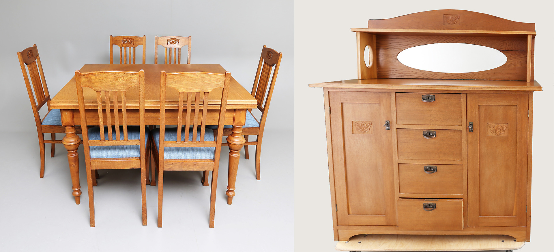 244551. SPISEMØBLER, 8 dele, Jugend, "Æblet".