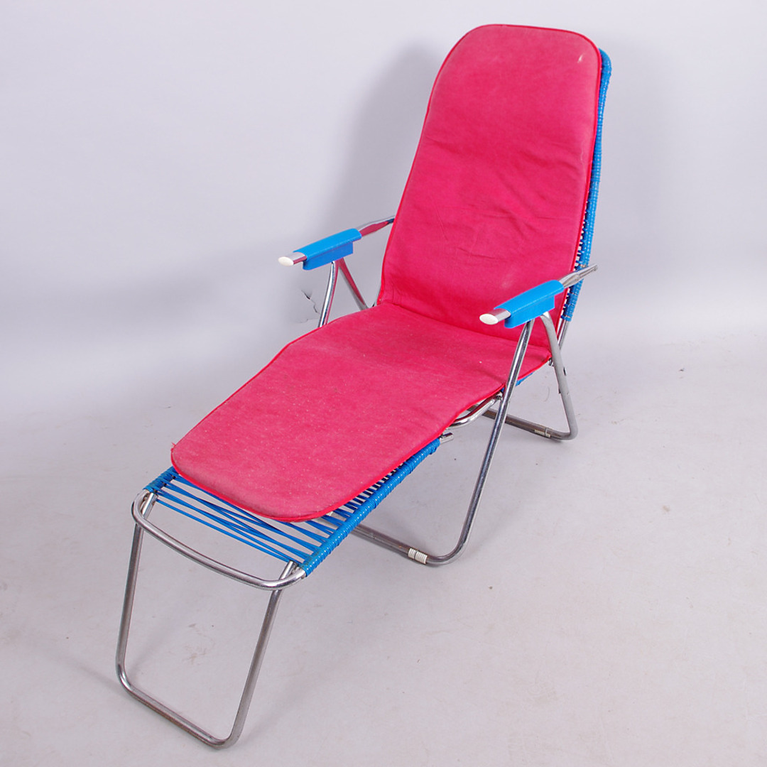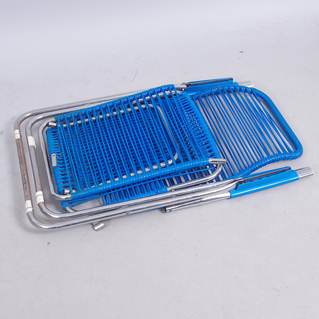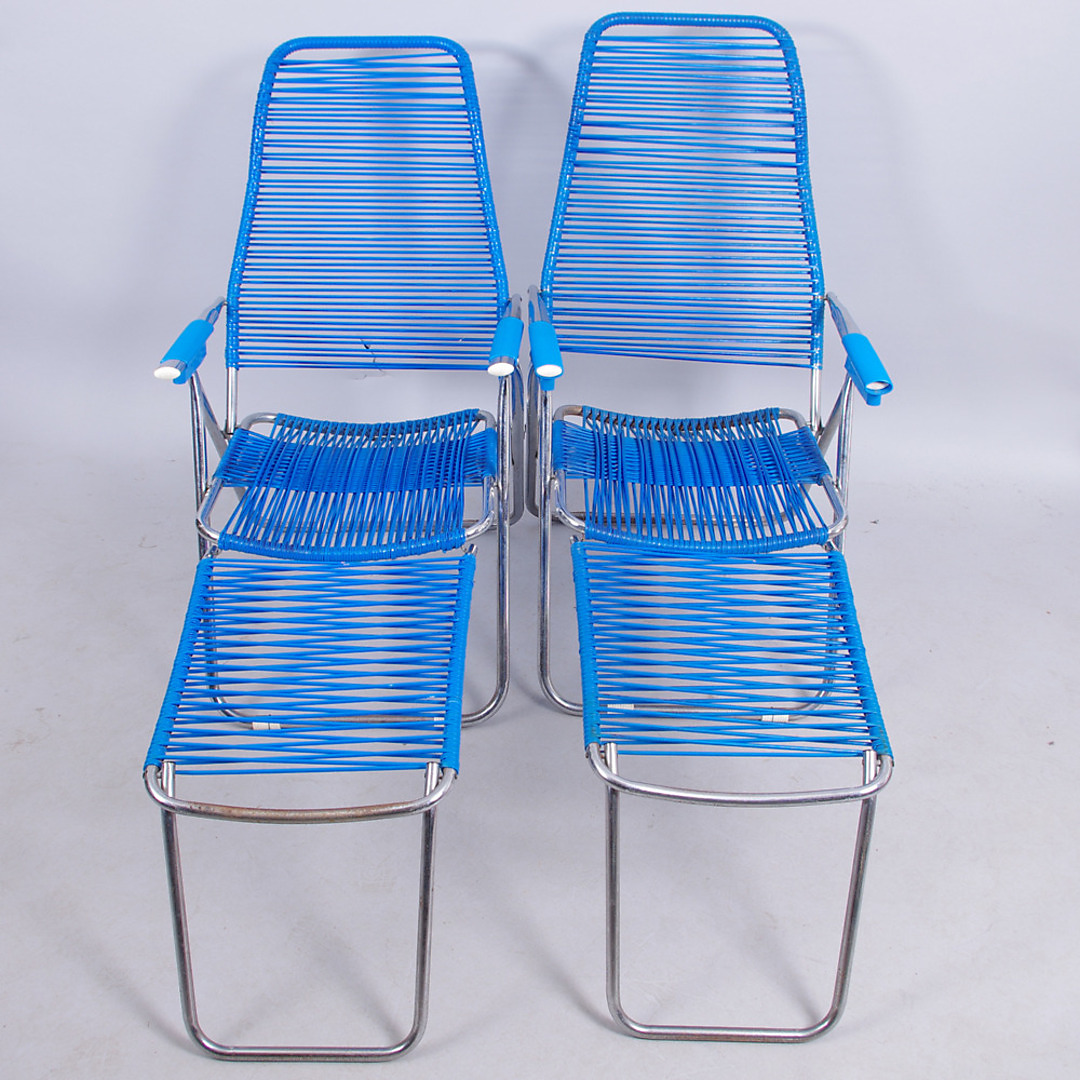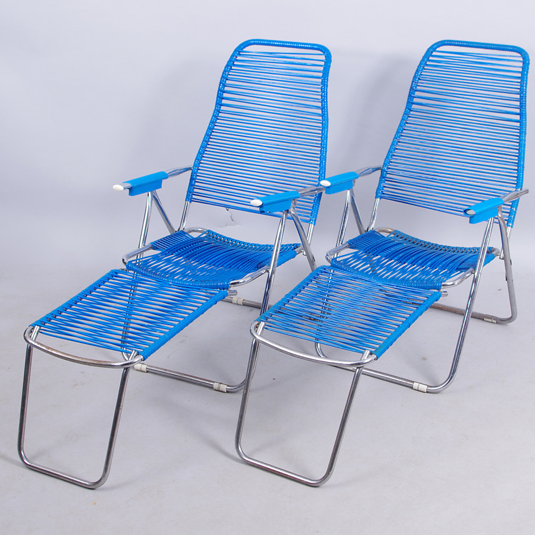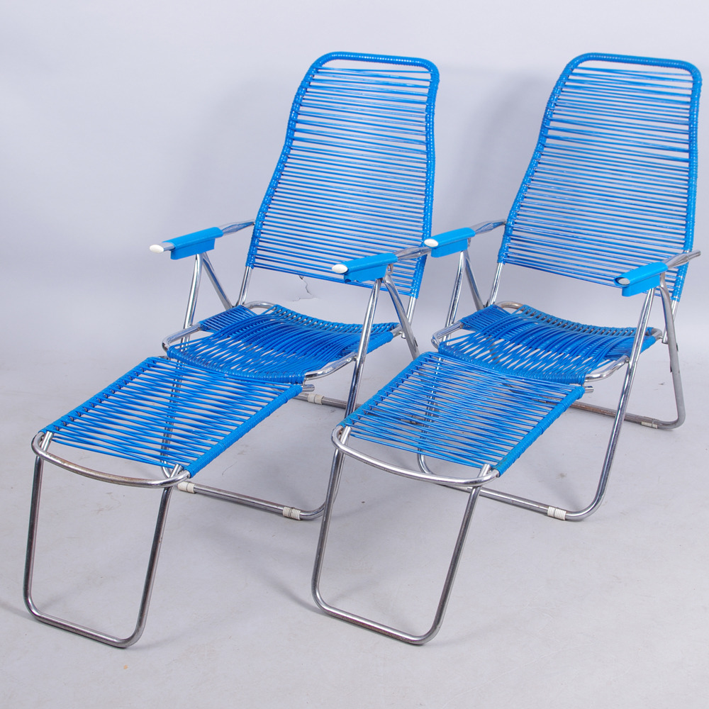 244841. Liggestole, 1 par, krom med blå elastik af snor.