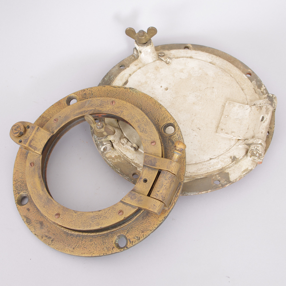 245300. BÅDVENTILER, 2 stk., messing heraf den ene malet.