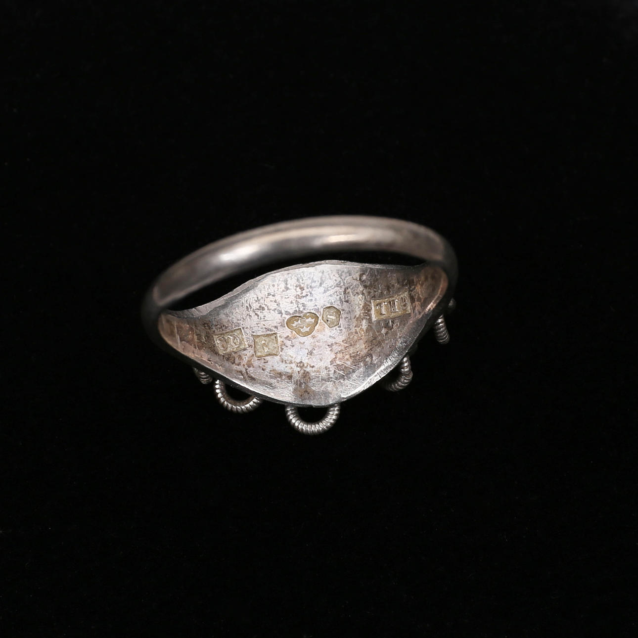 Halskæde, længde, ca 43 cm, bredeste bredde, ca 2,5 cm. Ring, sølv, 18 mm, 1942.