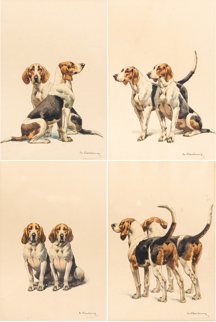 2455967. CHARLES FERNAND DE CONDAMY (C.1855-1913). 4 akvareller, rævehunde.