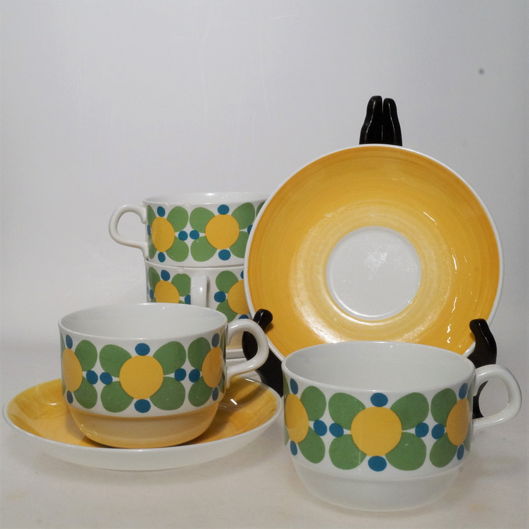 2458594. TEKOPPER 2 stk + 4 underkopper, Rörstrand "glad".
