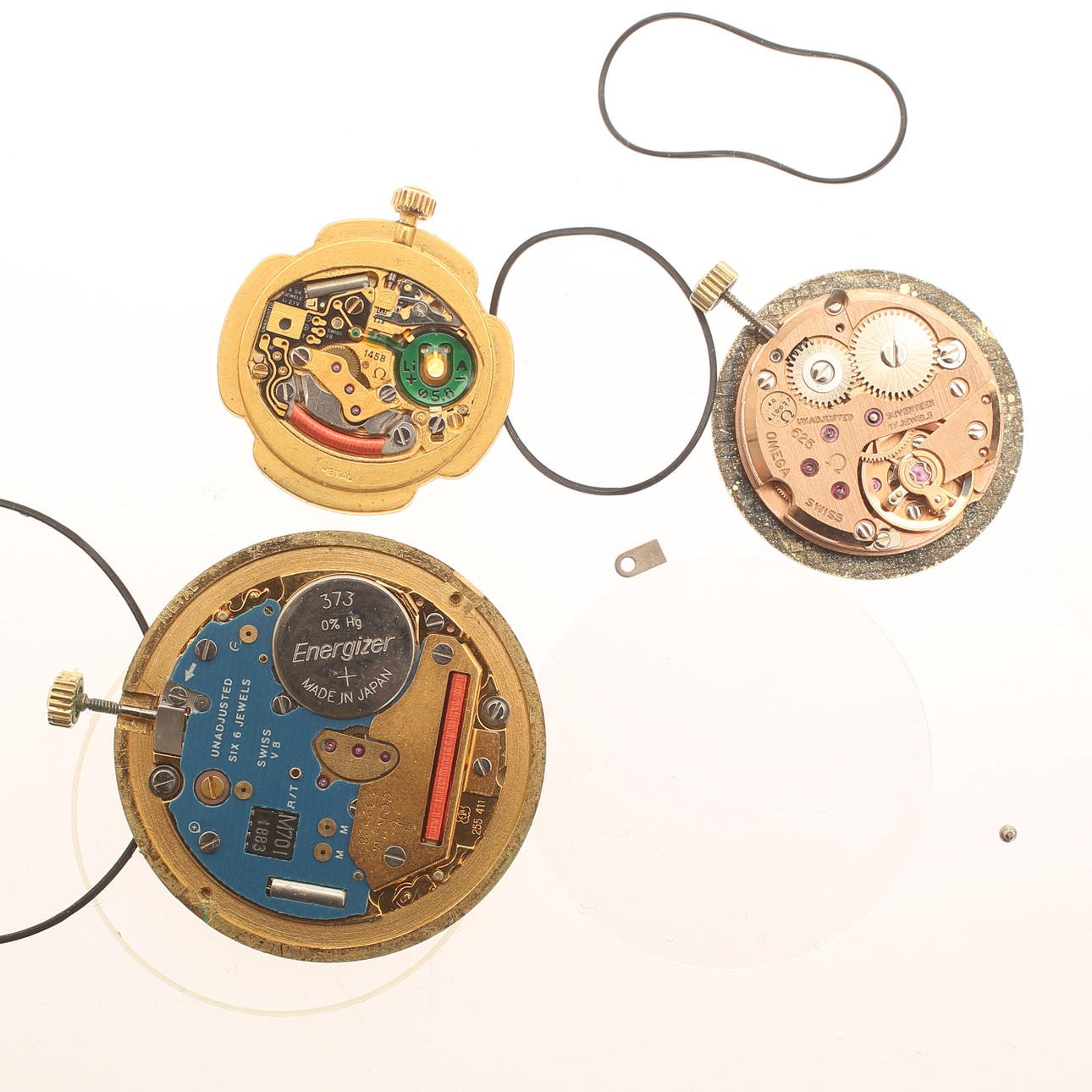 RESERVEDELE til armbåndsure, 3 dele, Omega og Corum.