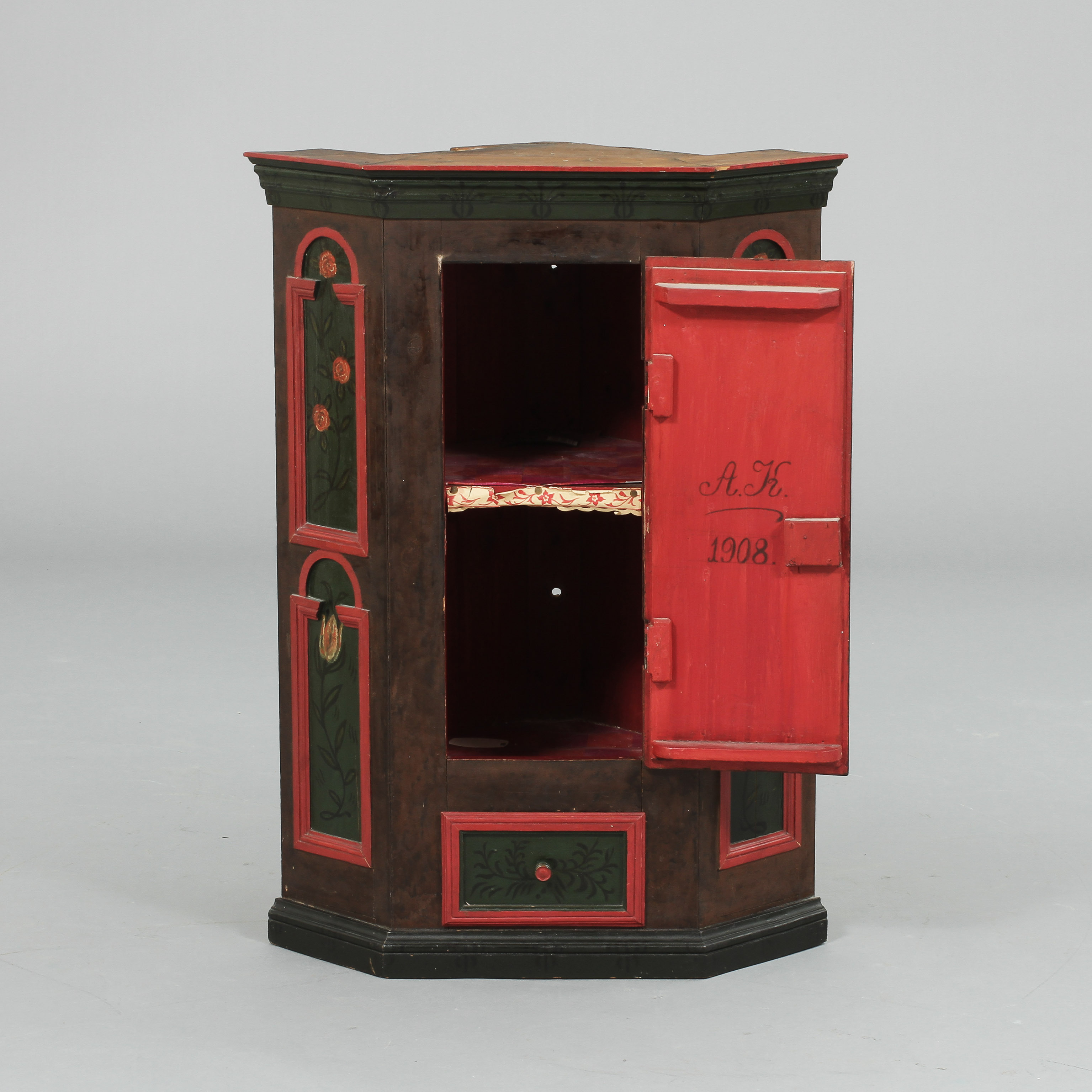 246168. HJØRNESKAB, folklore, omkring 1900.