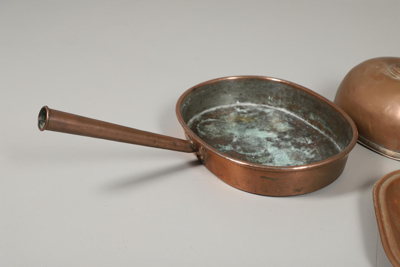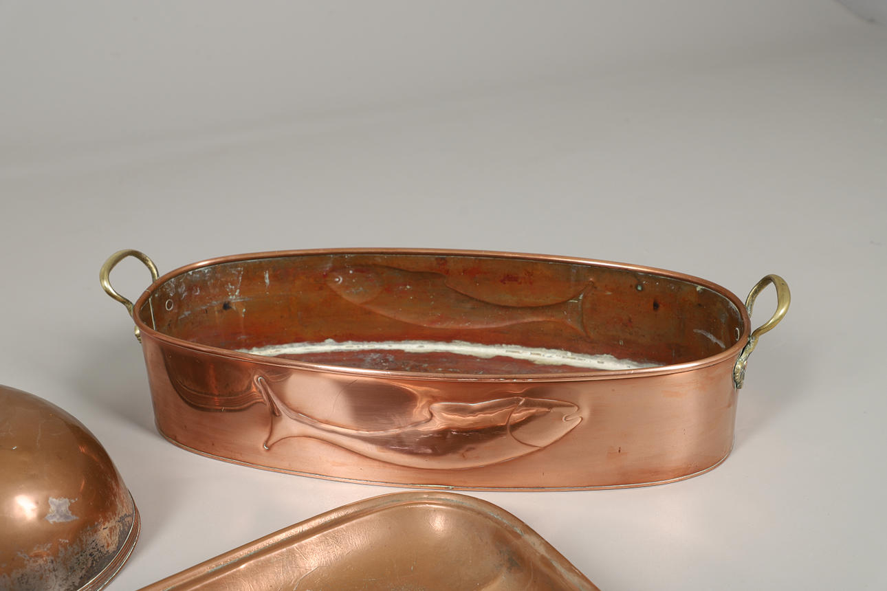 Til at inkludere en kødfad, fiskekedel (uden låg), stegepande og et belagt låg. Fiskekedel måler: Højde 17cm x Længde 67,5cm x Dybde 27cm. Panden er 41 cm ved den bredeste diameter. (4).