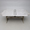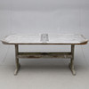 Otte stole med sammenklappelige ryglæn. Bordets længde ca 170, bredde 100, højde 71 cm.