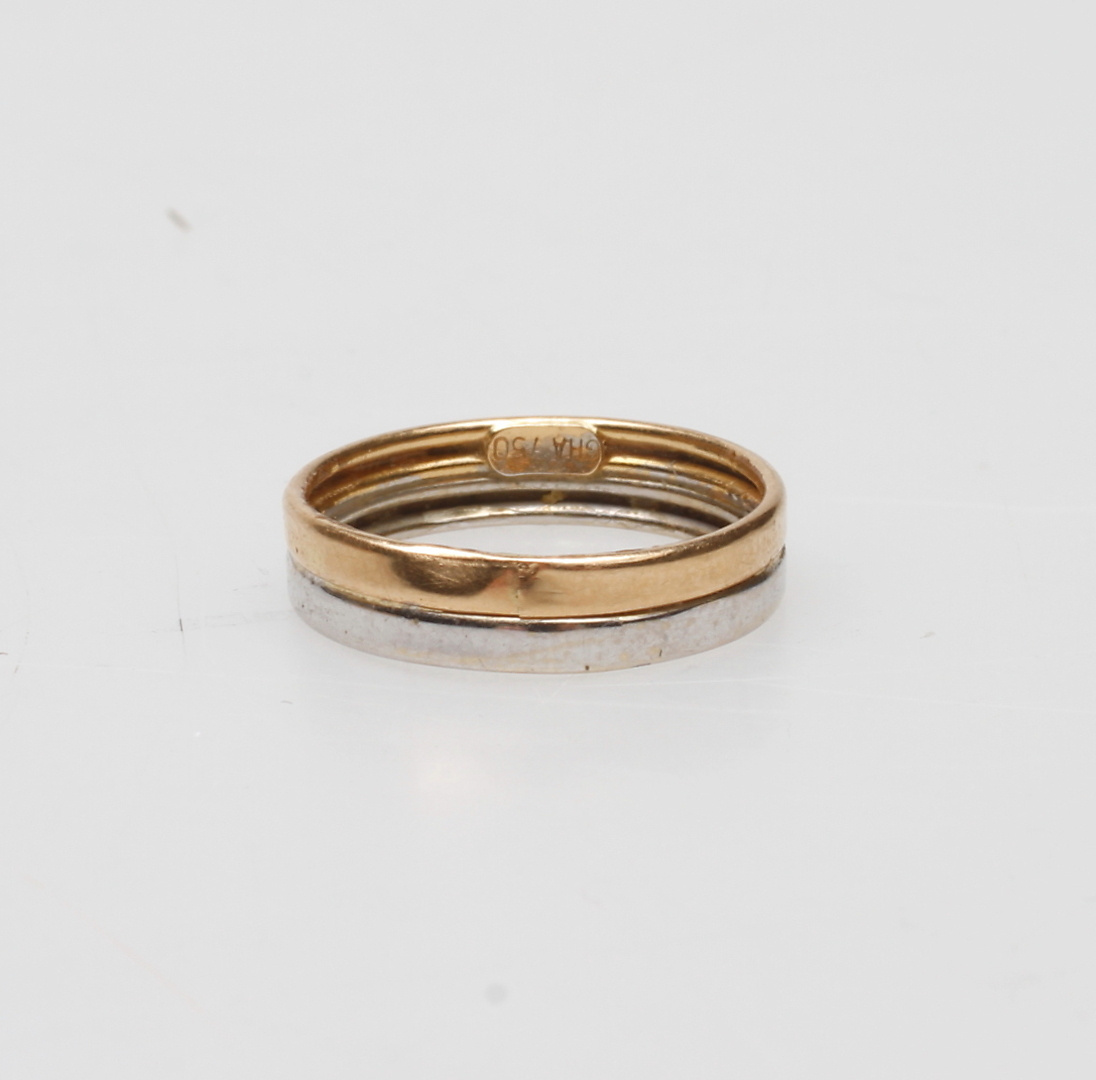 247530. RING, RØD/HVID 18k guld, vægt ca. 1,4 gr.