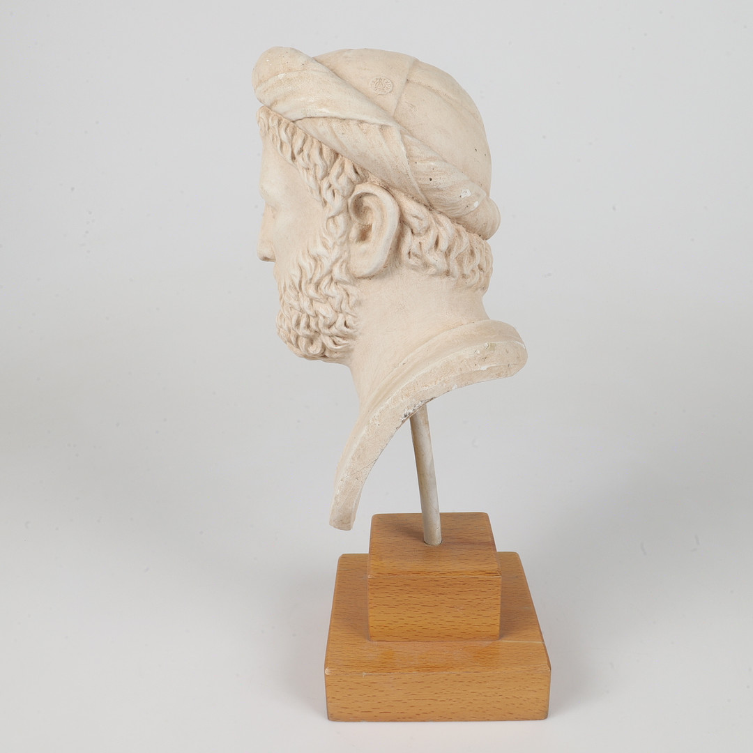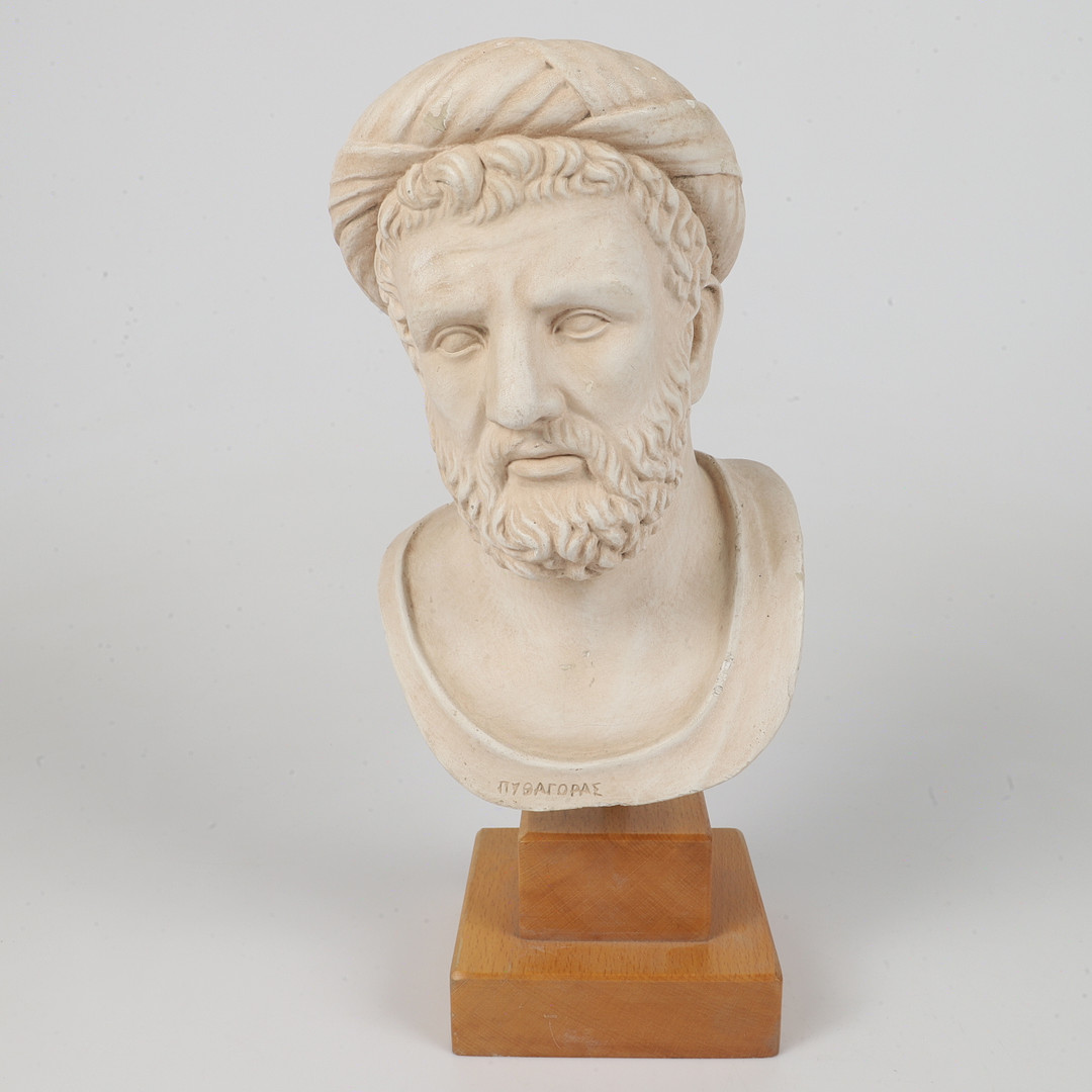 2477708. BUST PÅ PEDAL, "Pythagoras", gips.
