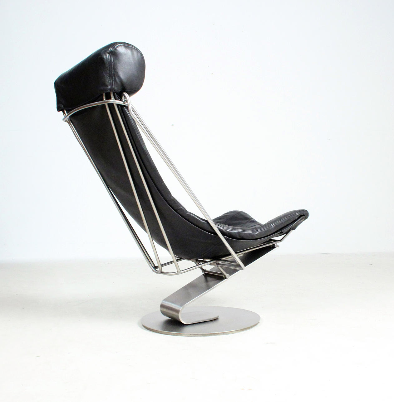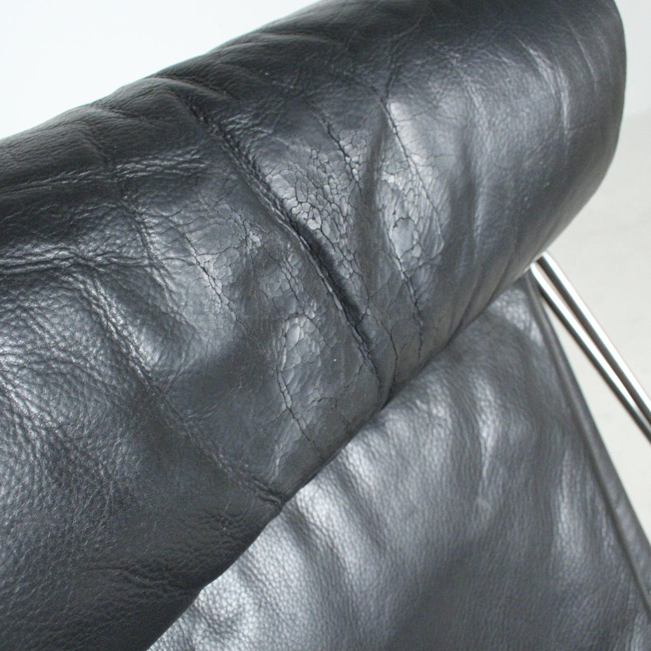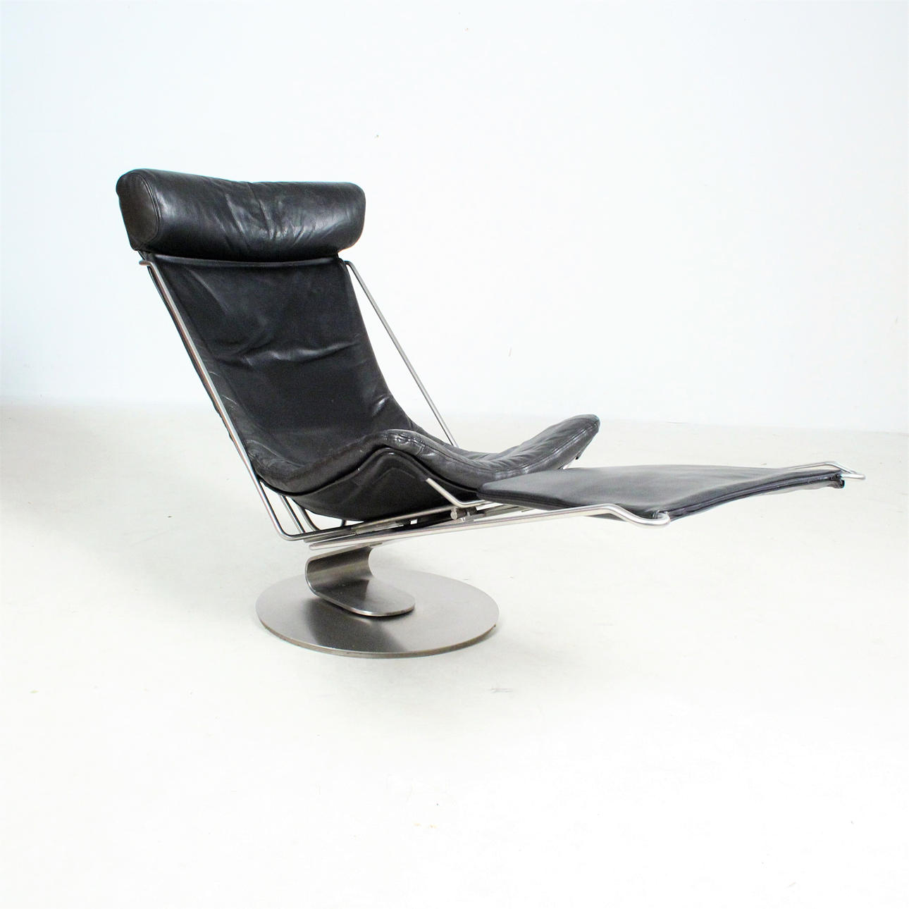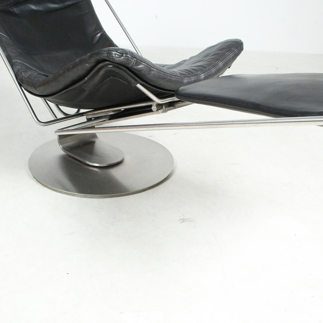 Materiale; Metal, sort læder Mål: H: 100 cm, B: 57 cm, D: 80/140 cm.