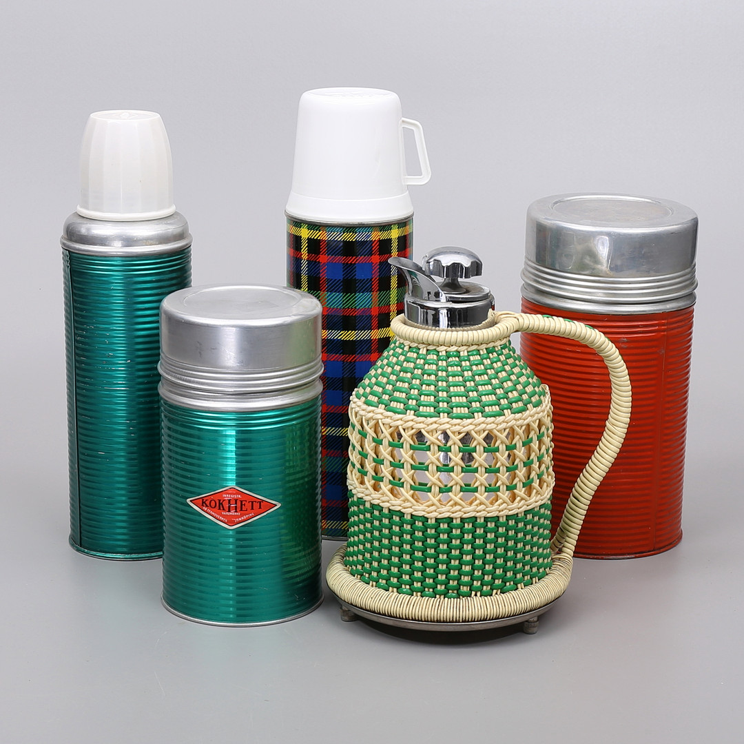 2480198. TERMOKKER, 5 stk. retro, blandt andet Termoverken, Jönköping.