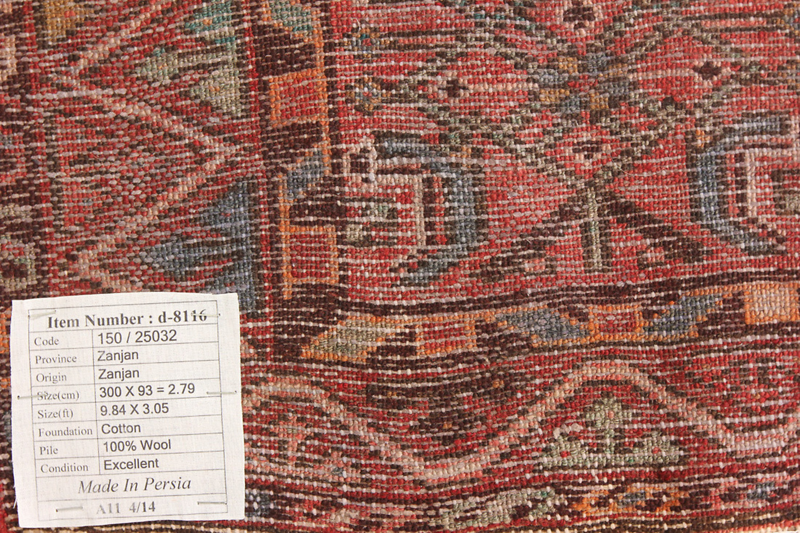 248024. ORIENTALSK TÆPPE, Zanjan, 300 x 93 cm.