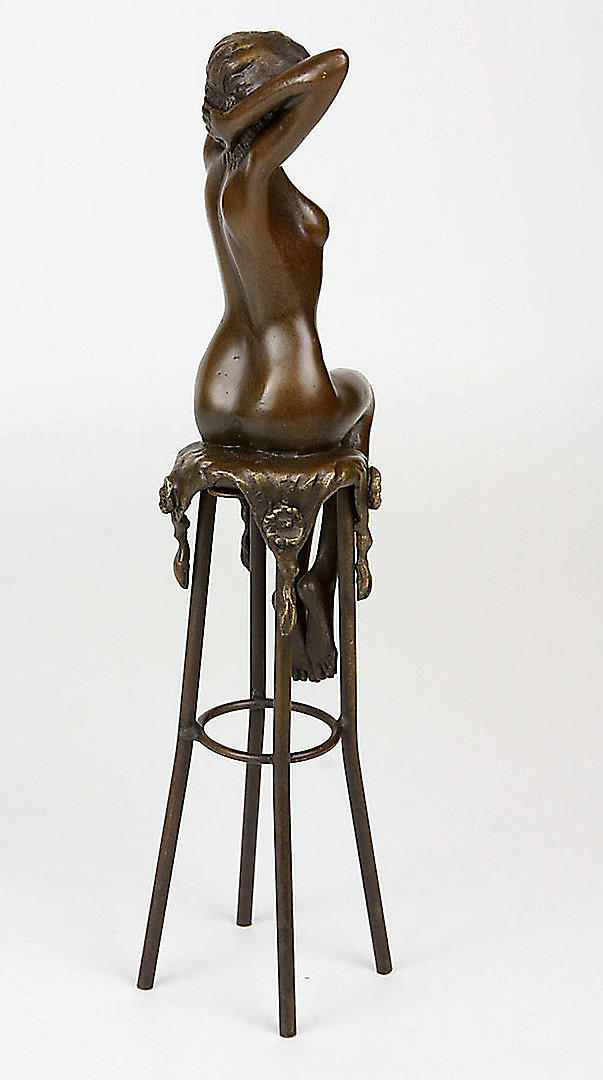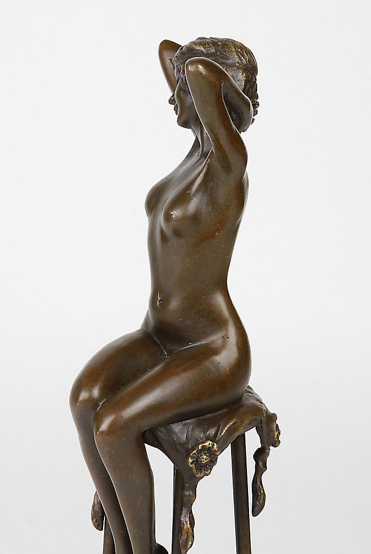 BRONZEFIGUR, SIDENDE NØGEN DAME.