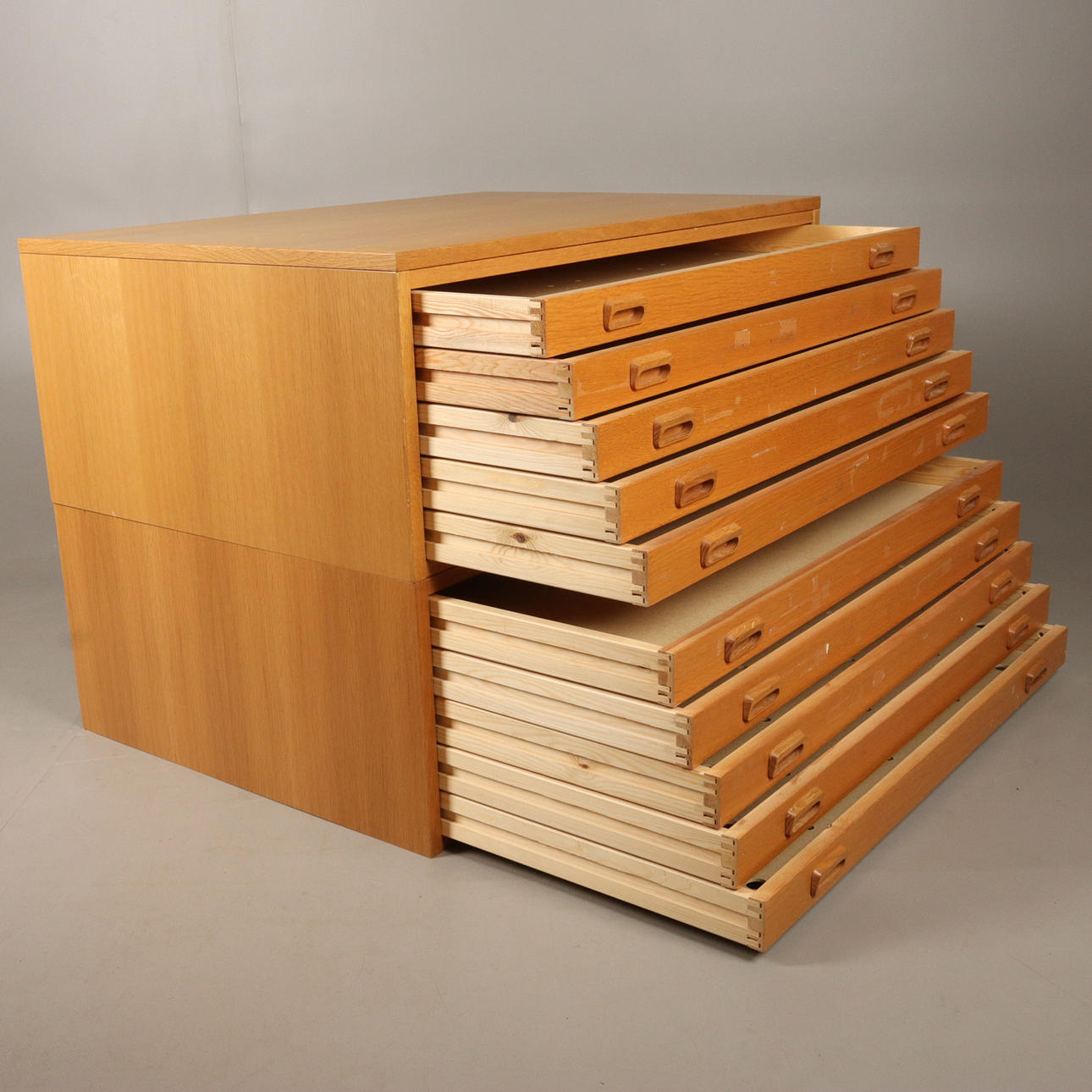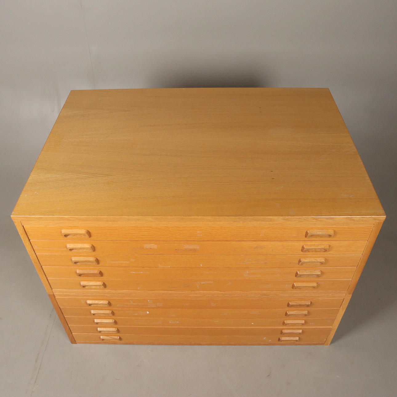 TEGNINGSKAB / ARKIVSKAB, egefiner, midten af 1900-tallet.