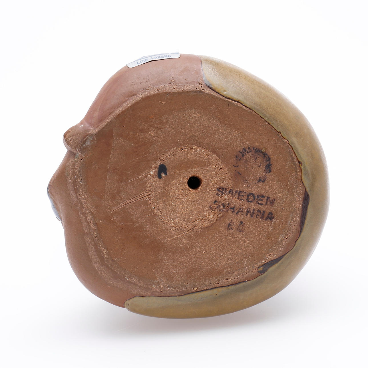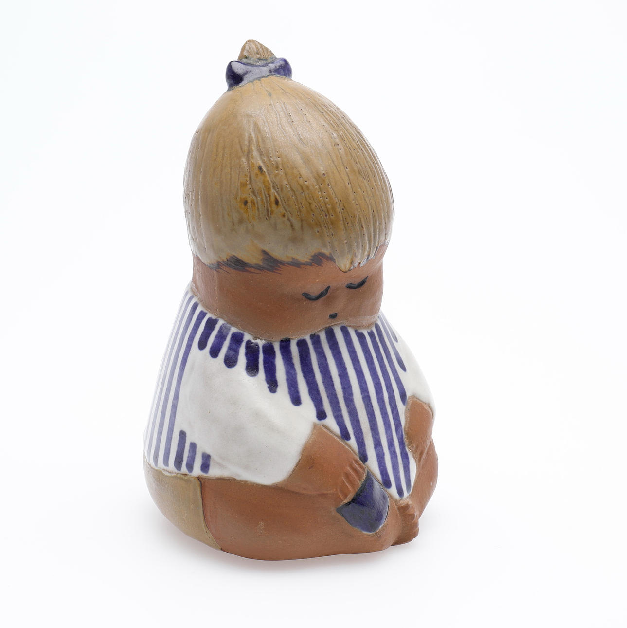 Fra "Larsons børn" serien, delvist glaseret stentøj, etiket mærket og monogram signeret. Højde 15 cm.
