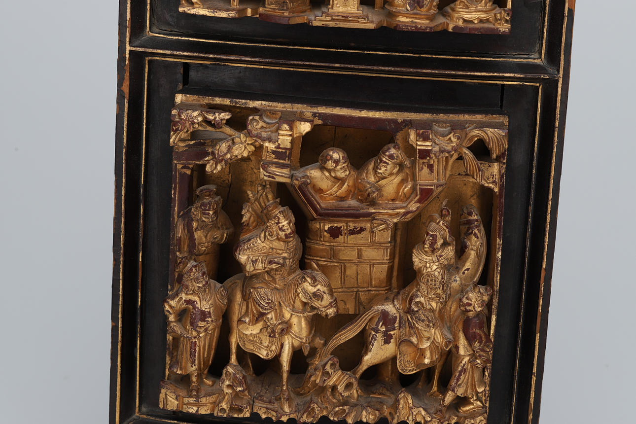 2496419. TRÆPLADE, træsnit, forgyldte figurer, 1800-/1900-tallet.