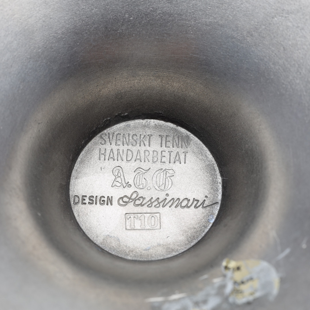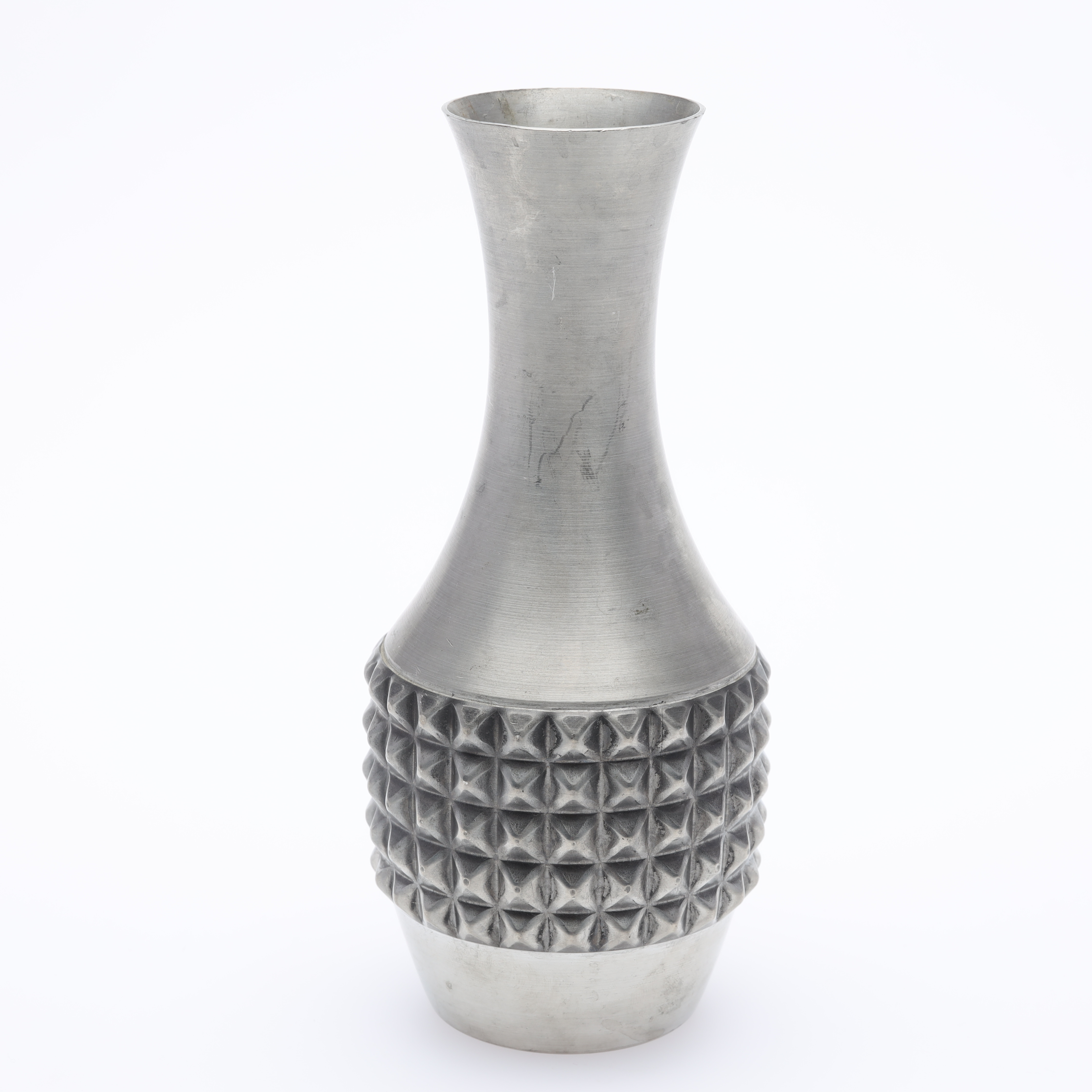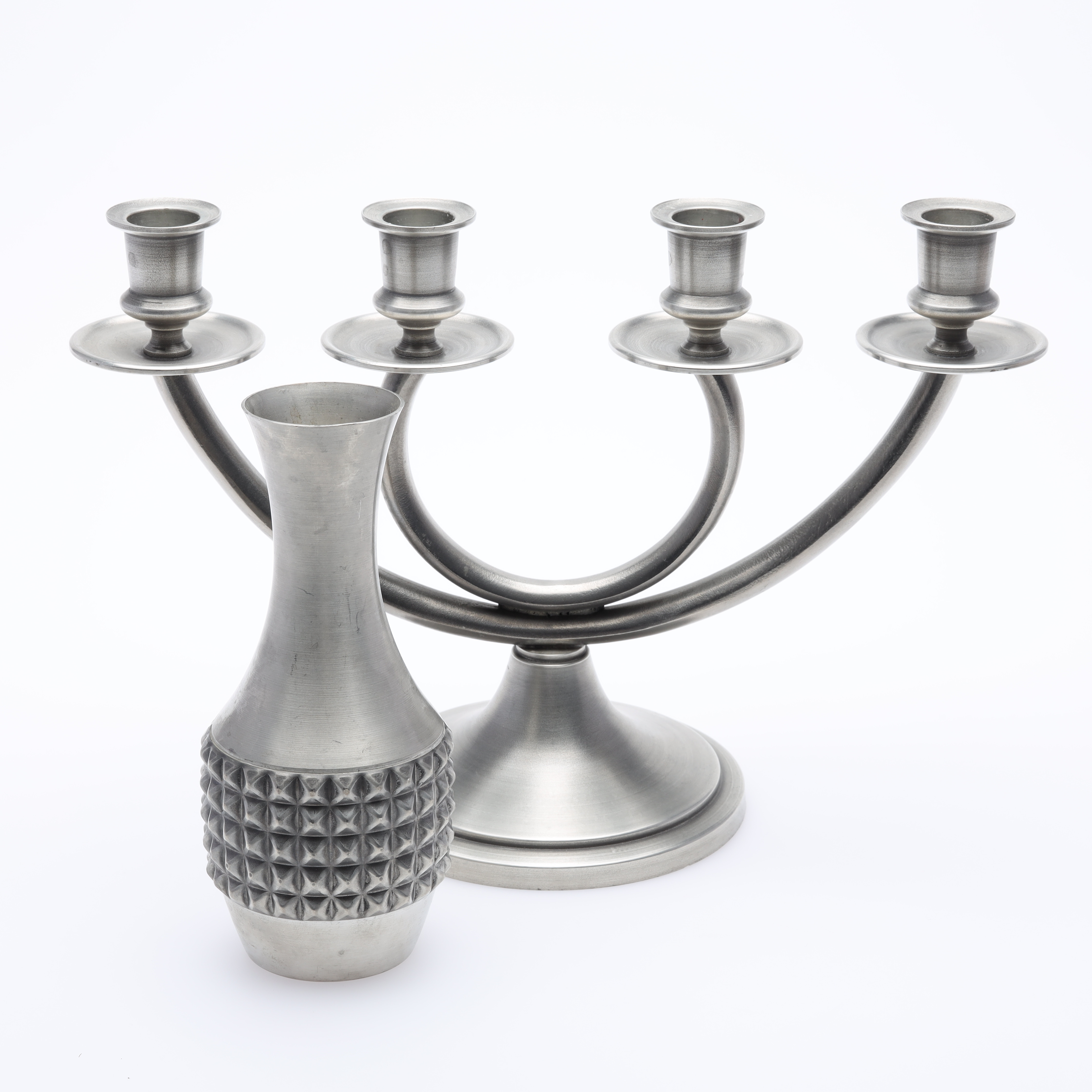 2498780. TIN OBJEKTER, vase, kandelabre, 2 dele.